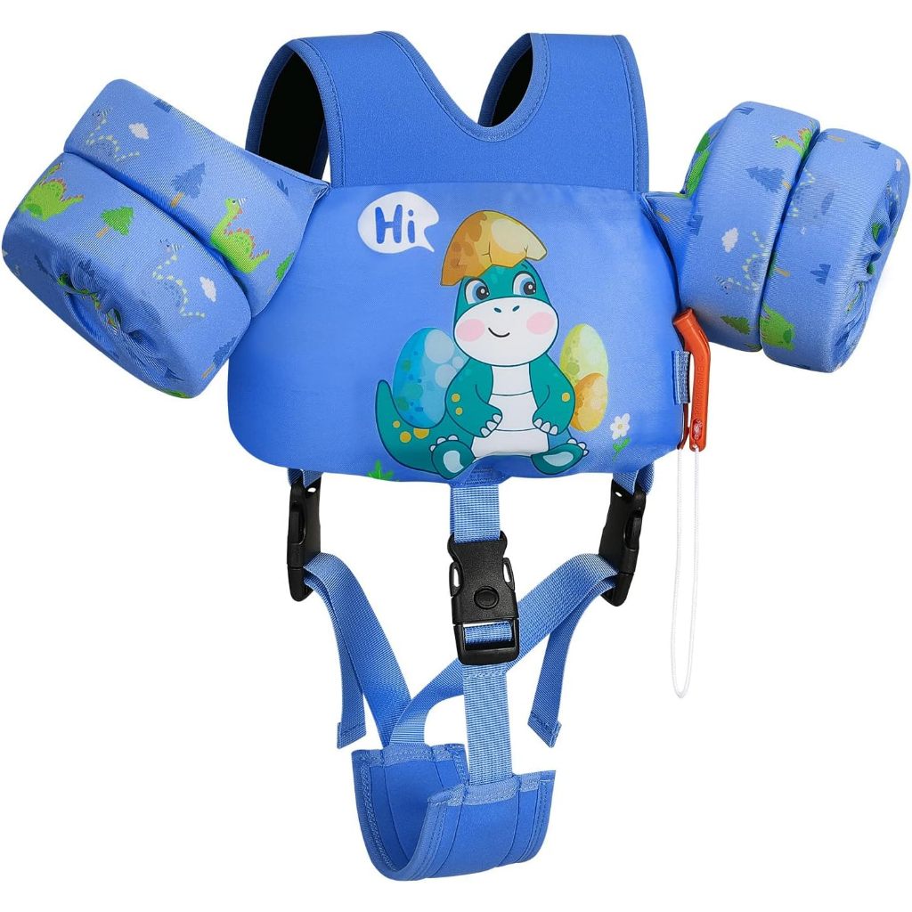 MoKo Toddler Floaties Cartoon Swim Arm Band, Toddler Swim Vest for Kids 13-33 lbs with Crotch Strap Pool Float Vests Sleeves Shoulder Straps Learn to Swim (S Size)