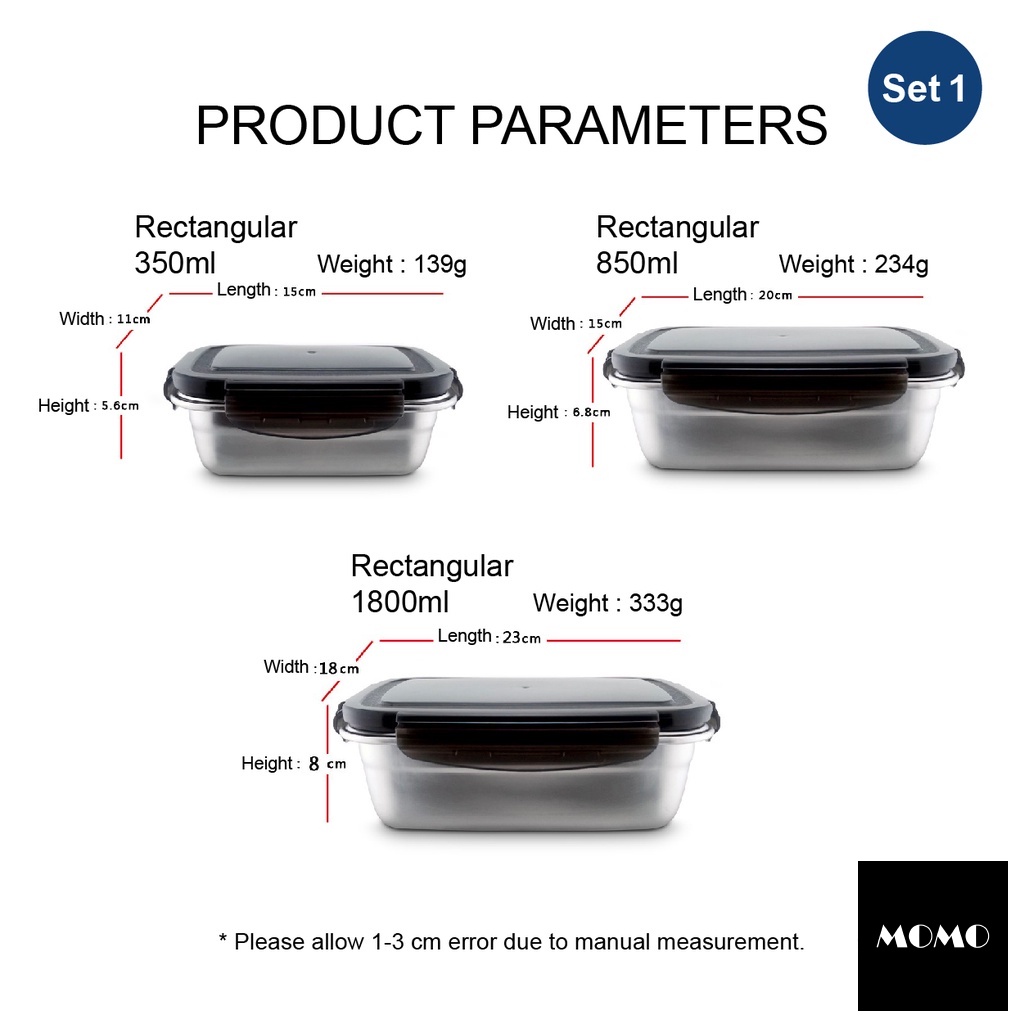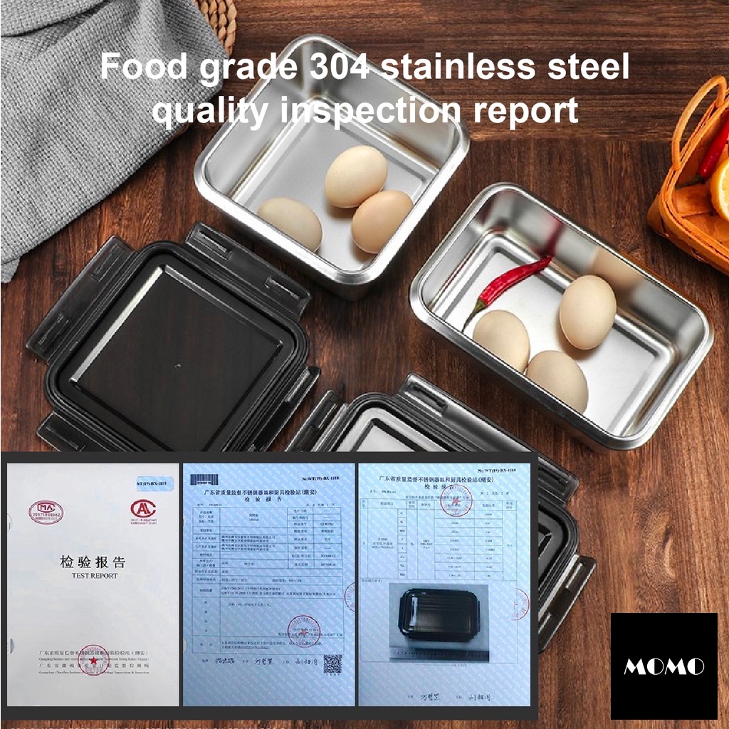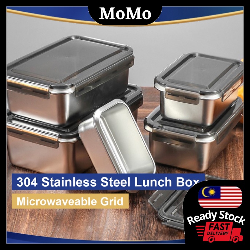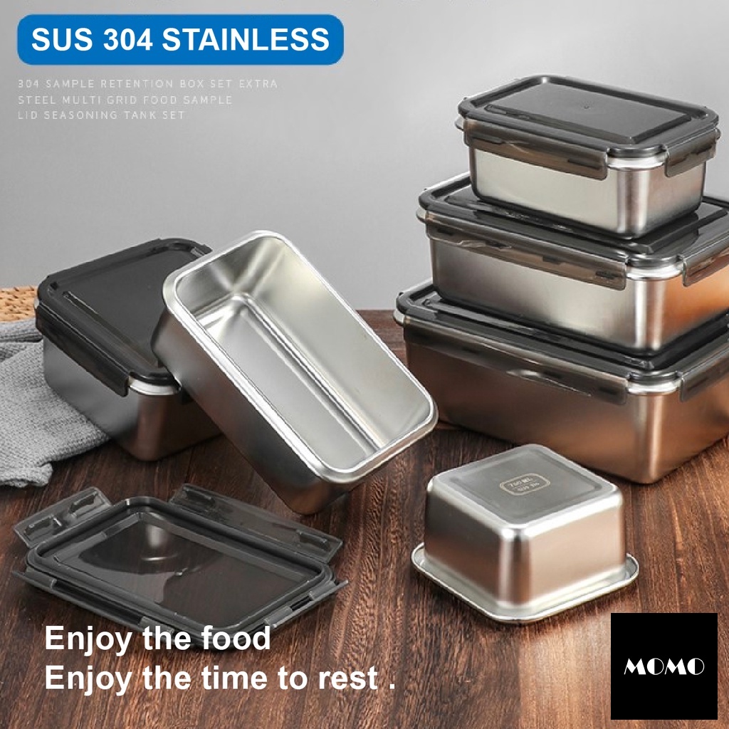 MoMo 304 Stainless Steel Food Container with Lid Fresh Keeping Box Food Container Lunch Box Tupperware Bekas Makanan