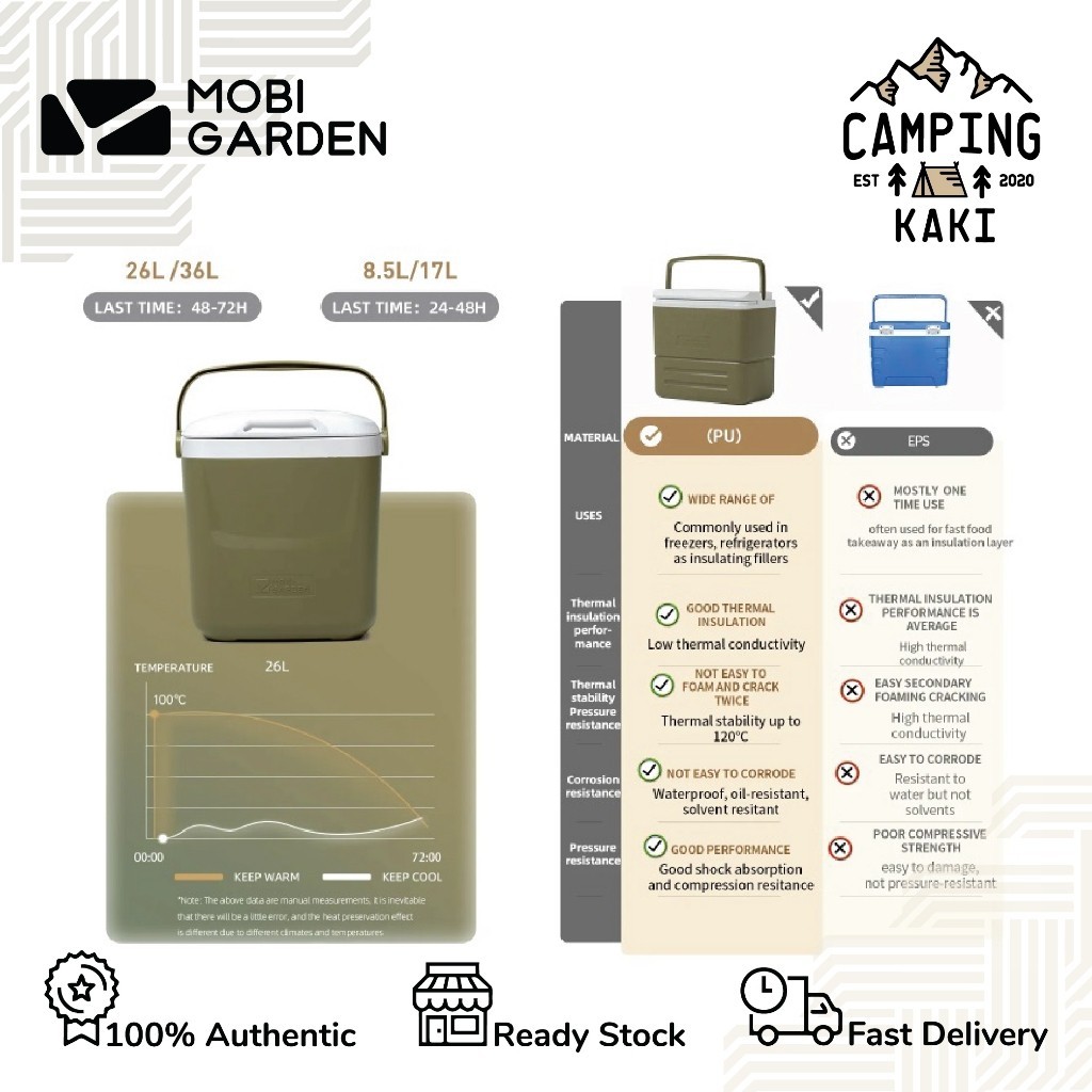 Mobi Garden Camping Cooler Ice Box 26L Cooler Box with trolley