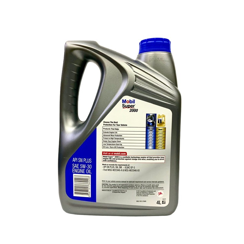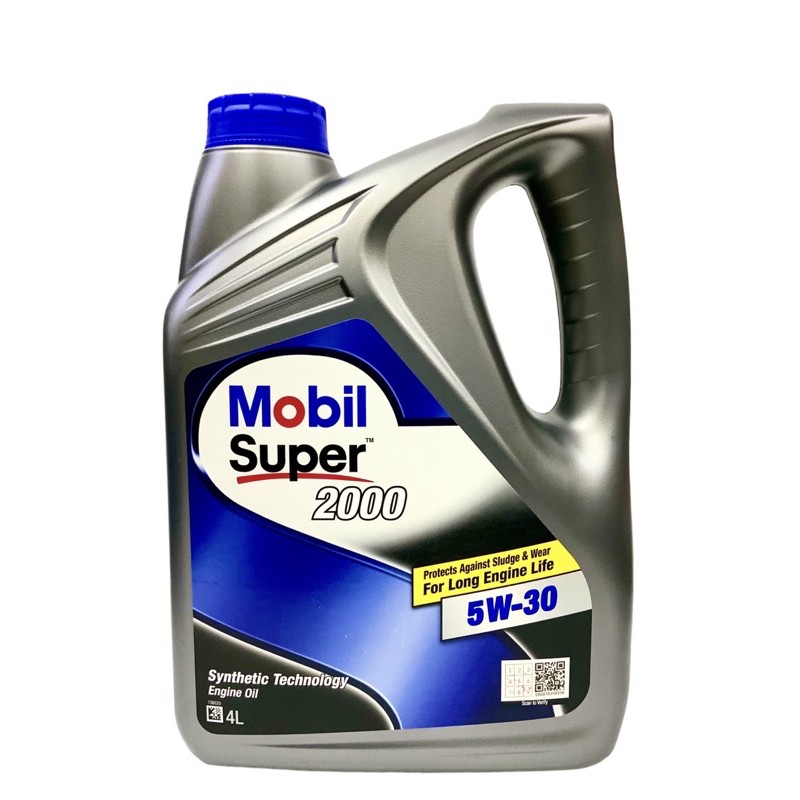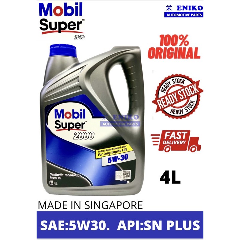 Mobil Super 2000 5W-30 SN PLUS 4L Semi Synthetic Engine Oil Alza Vios Arus Myvi 1.3 1.5 Minyak Hitam Pelincir Kereta