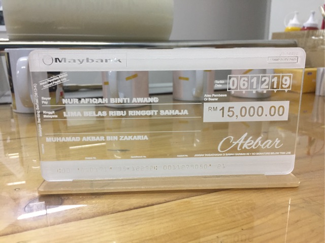 Mock up Cheque Acrylic Hantaran Kahwin