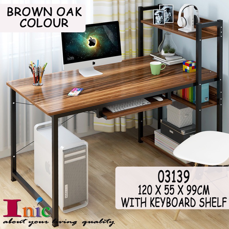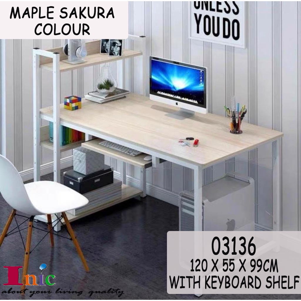 Modern Adjustable Study Table Meja Office Computer Table Laptop Desk Meja Tulis Table With Keyboard Shelf & Book Rack