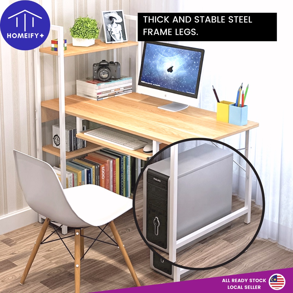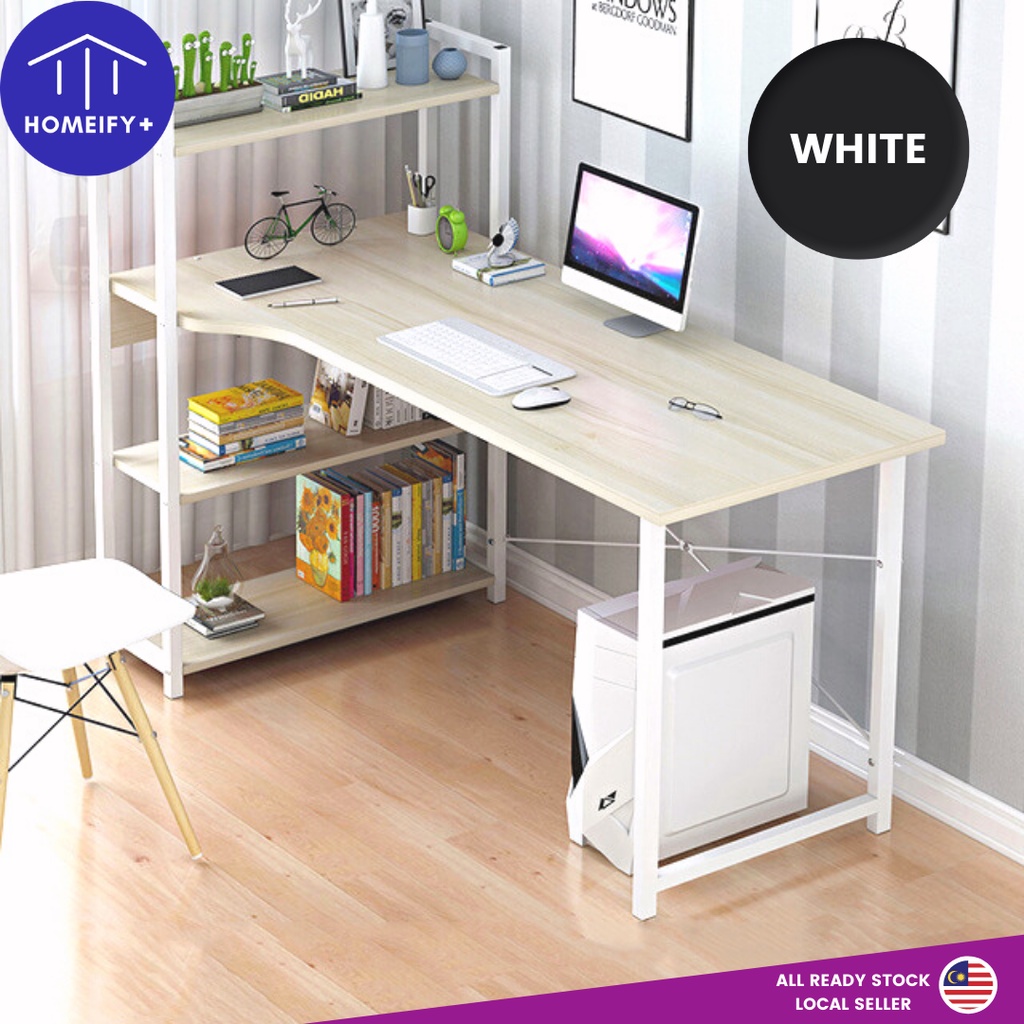 Modern Computer Study Table With Side Bookshelves / Office Desk with Storage Rack (120cm X 110cm X 55cm)