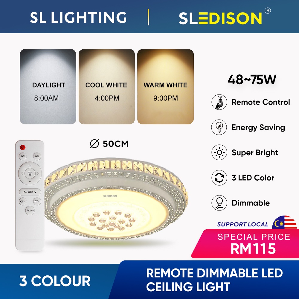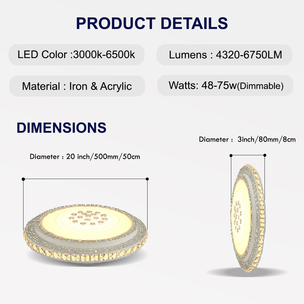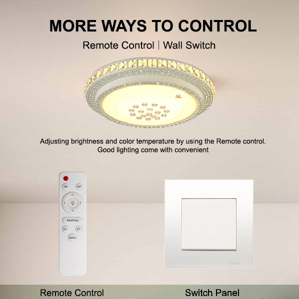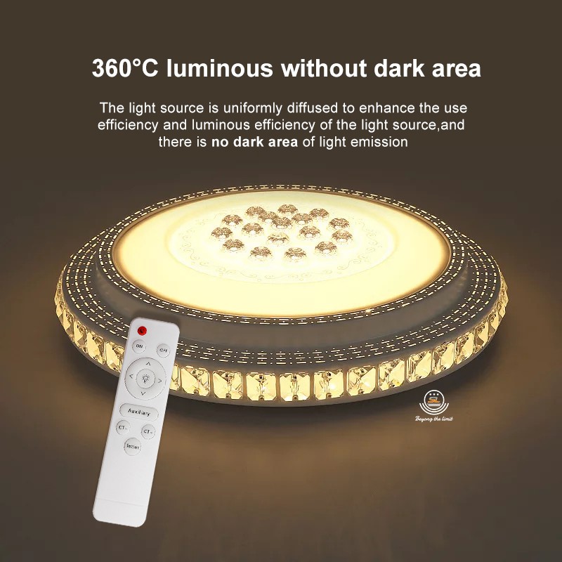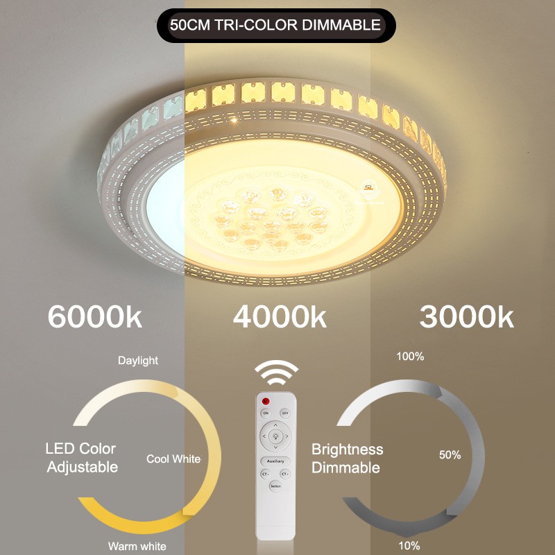 Moden Lampu Siling Kristal 50cm LED 3-Warna Remote Control Lampu Hiasan Modern Crystal Surface LED Ceiling Light
