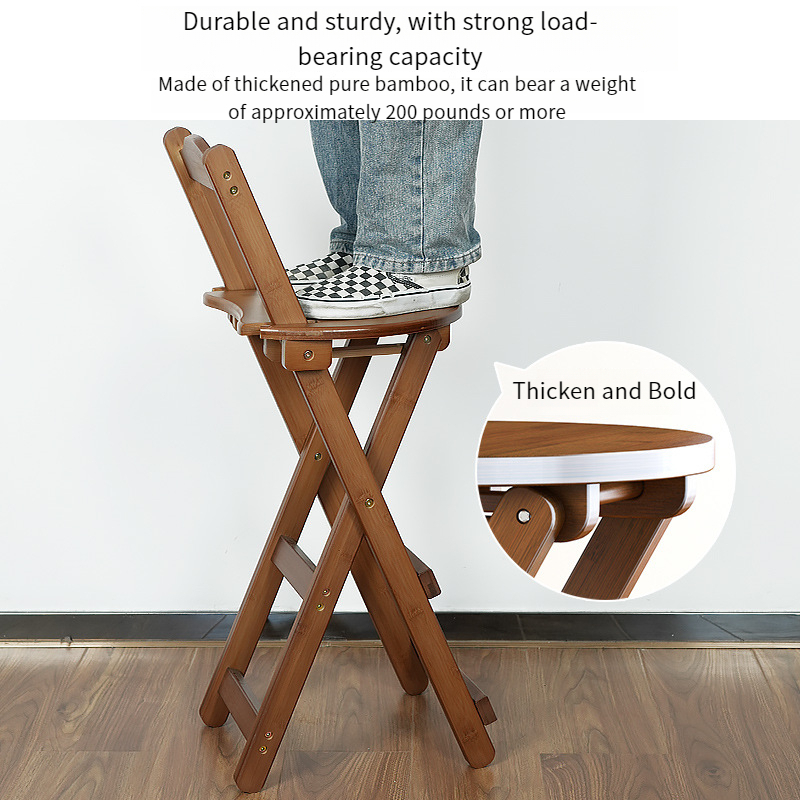 Modern Foldable High Stool Solid Wood Bar Stool Japanese Style Bamboo Restaurant Armchair