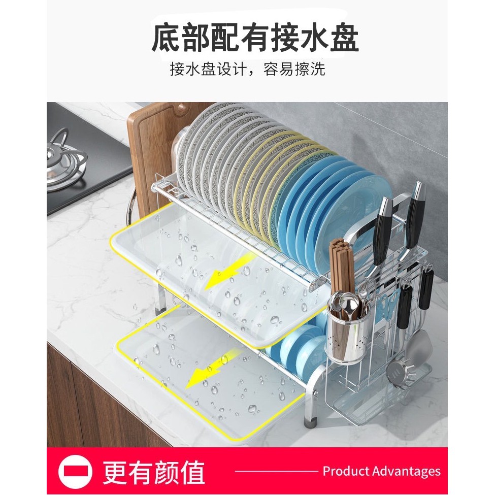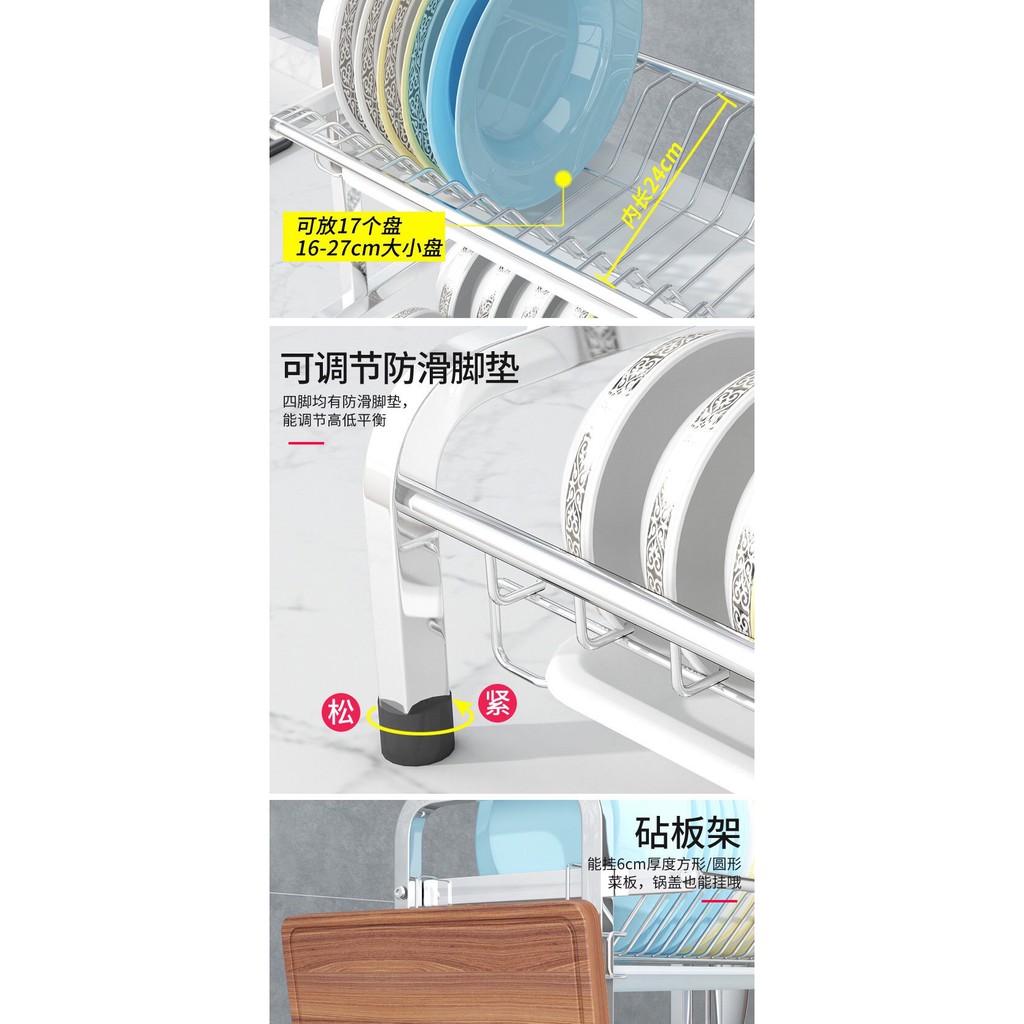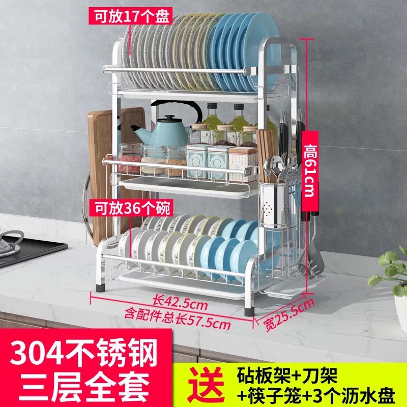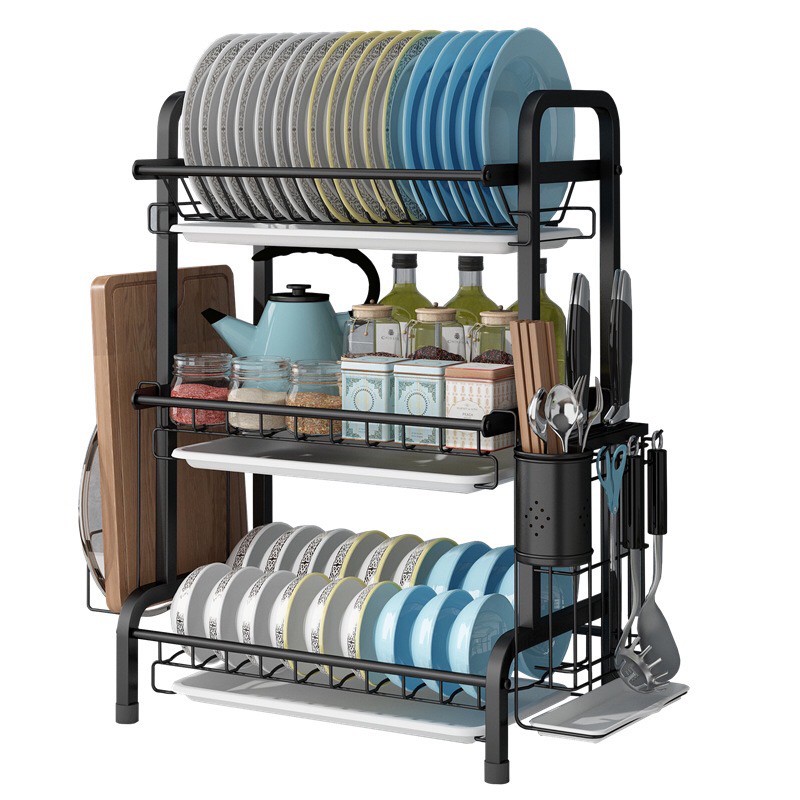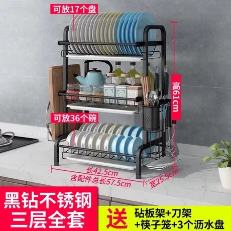 Modern H Type SUS 304 Stainless Steel 2 Or 3 Tier Black And Silver Dish washing Rack Drain Rack Kitchen Rack Dish Plate