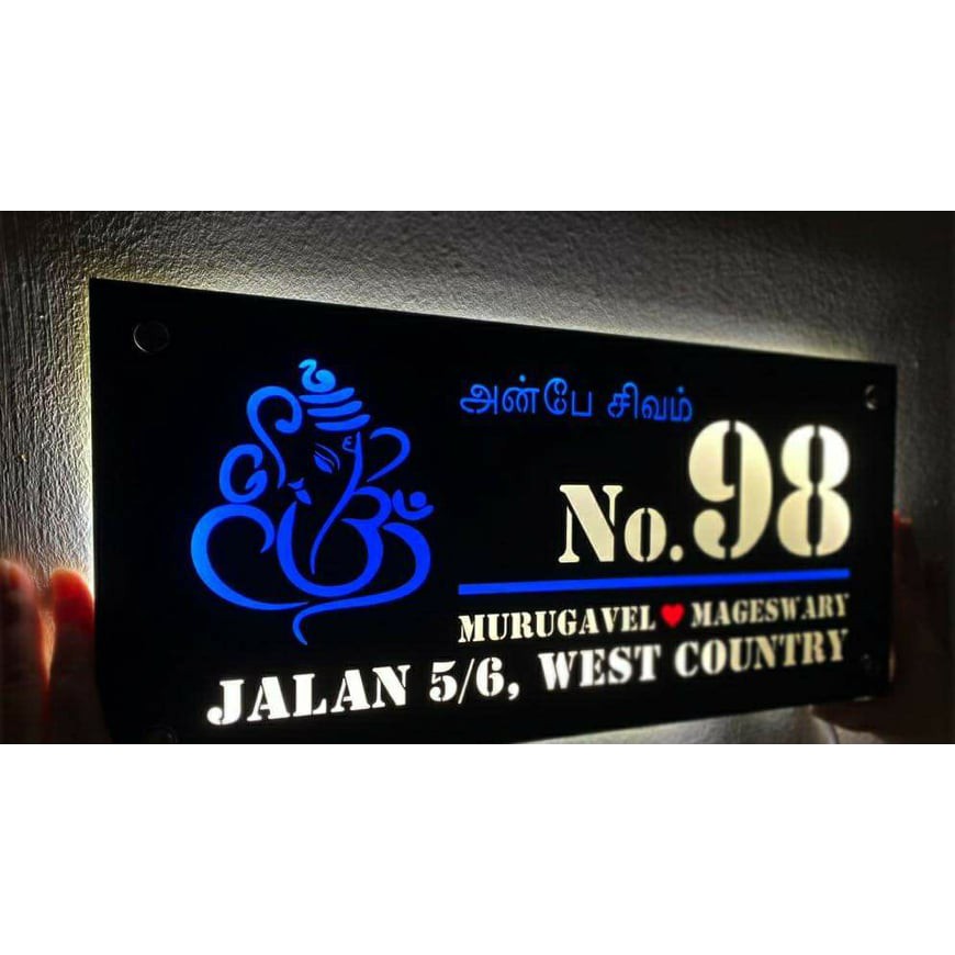 Modern House Number Plate Eg Steel with powder Coating House number plate (Fully Customized) With LED india style
