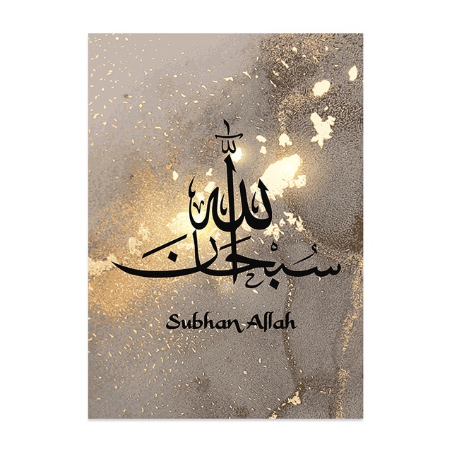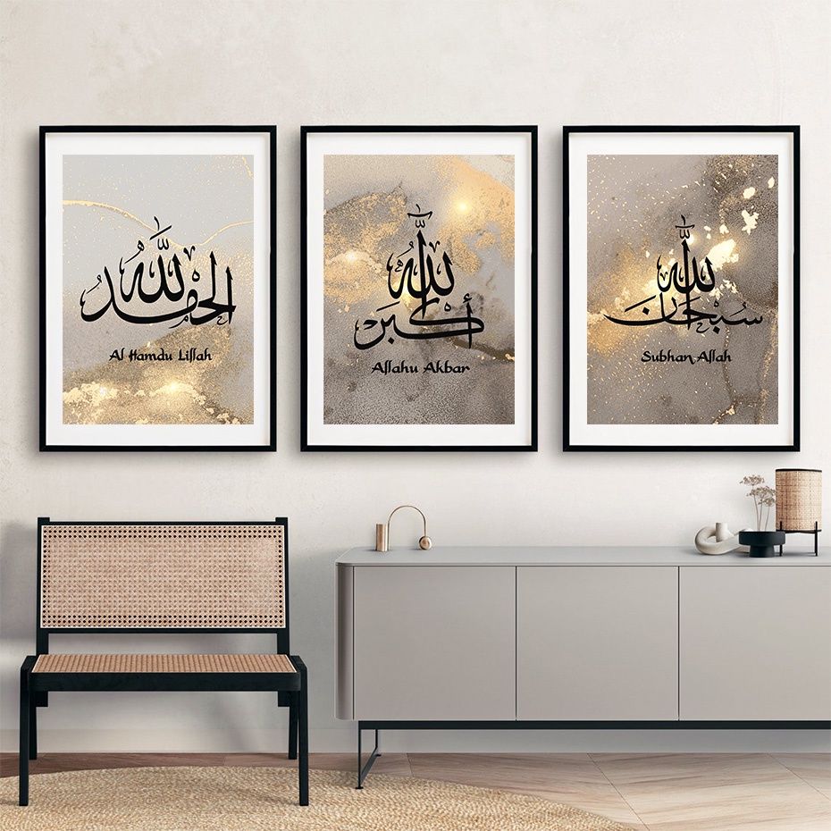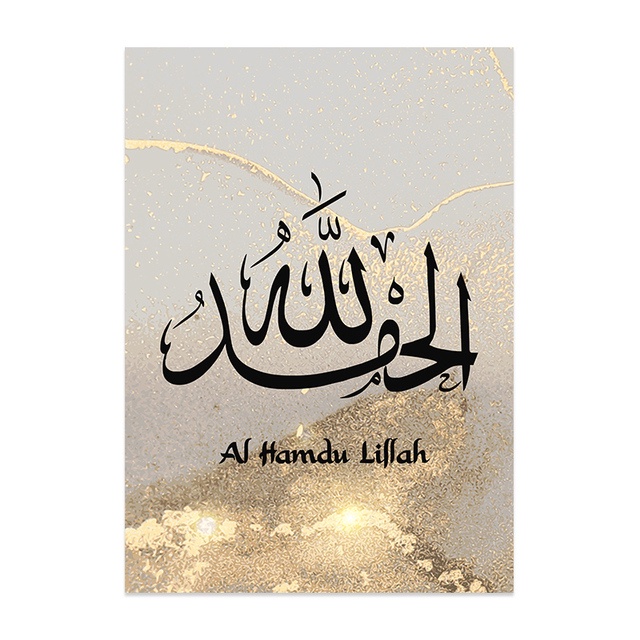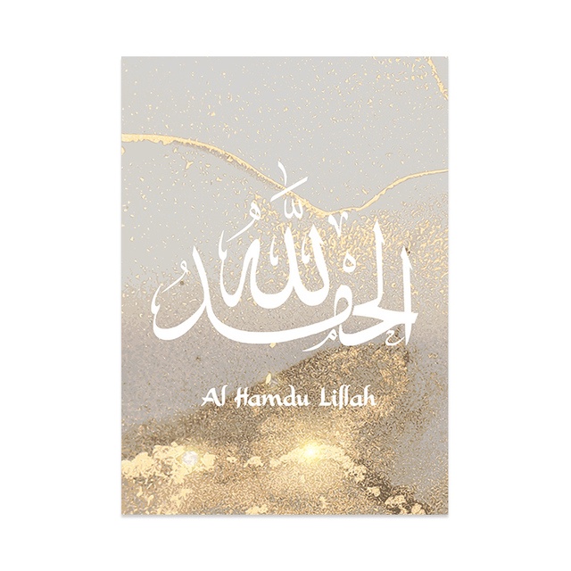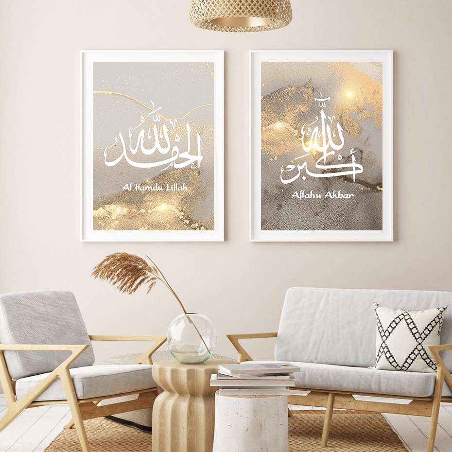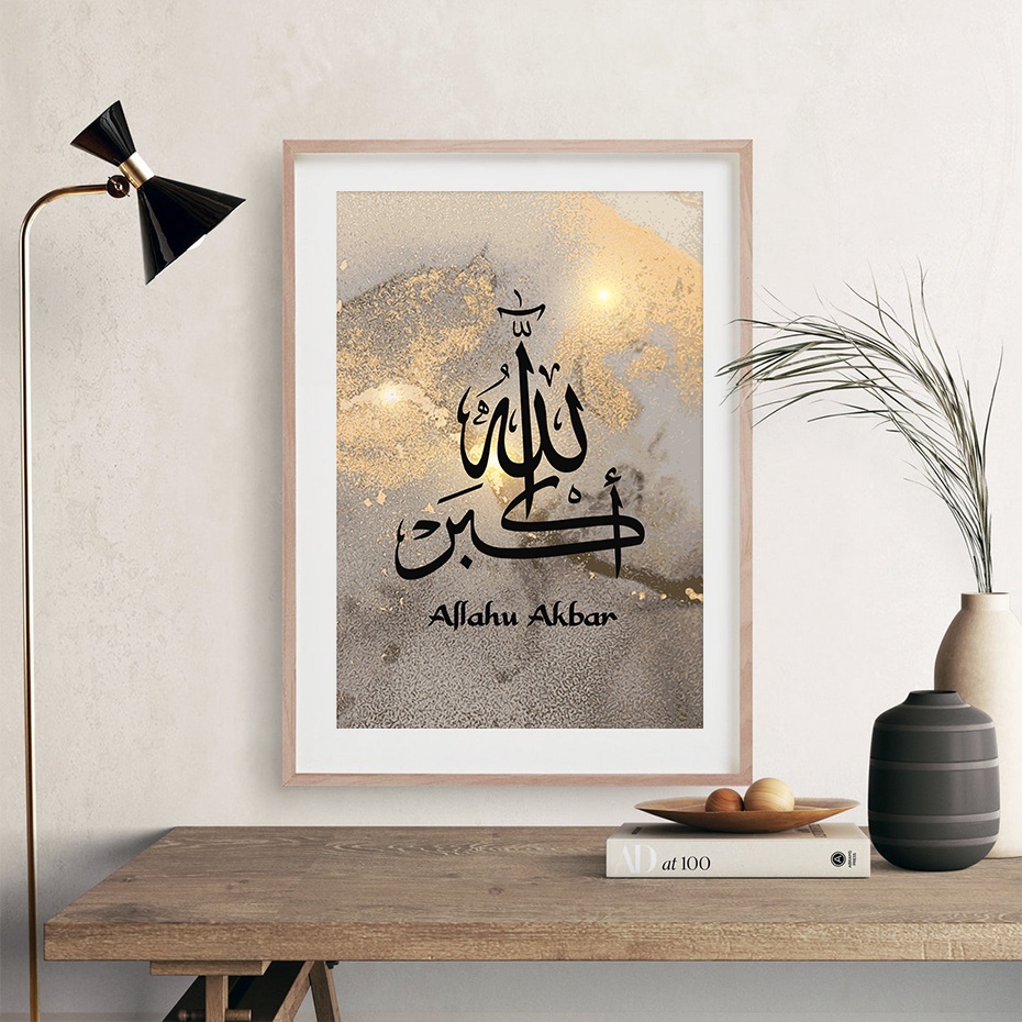 Modern Islamic Calligraphy Allahu Akbar Gold Marble Posters Canvas Painting Wall Art Print Pictures Living Room Home Decoration