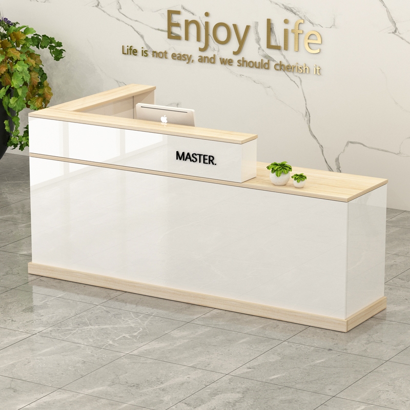 Modern Simple Front Desk Reception Counter Cashier Counter L Shape Counter (White)
