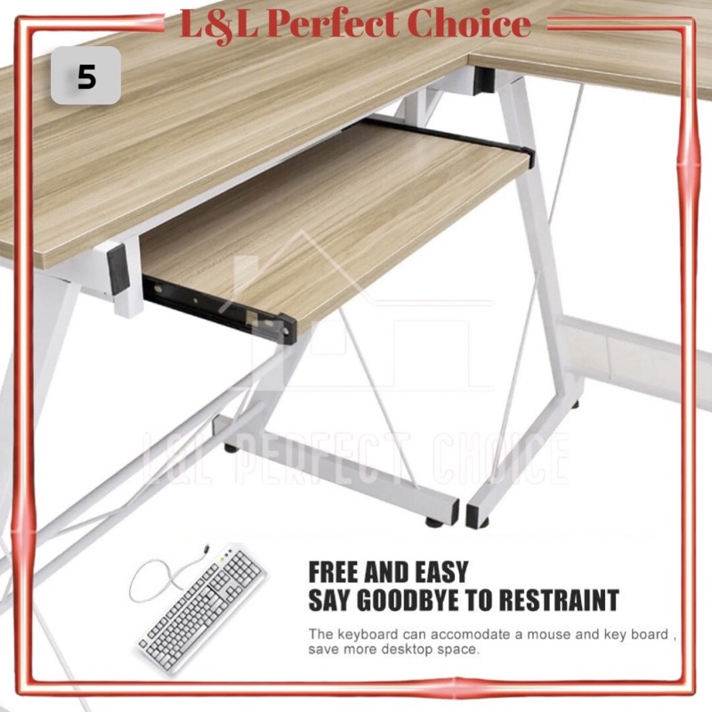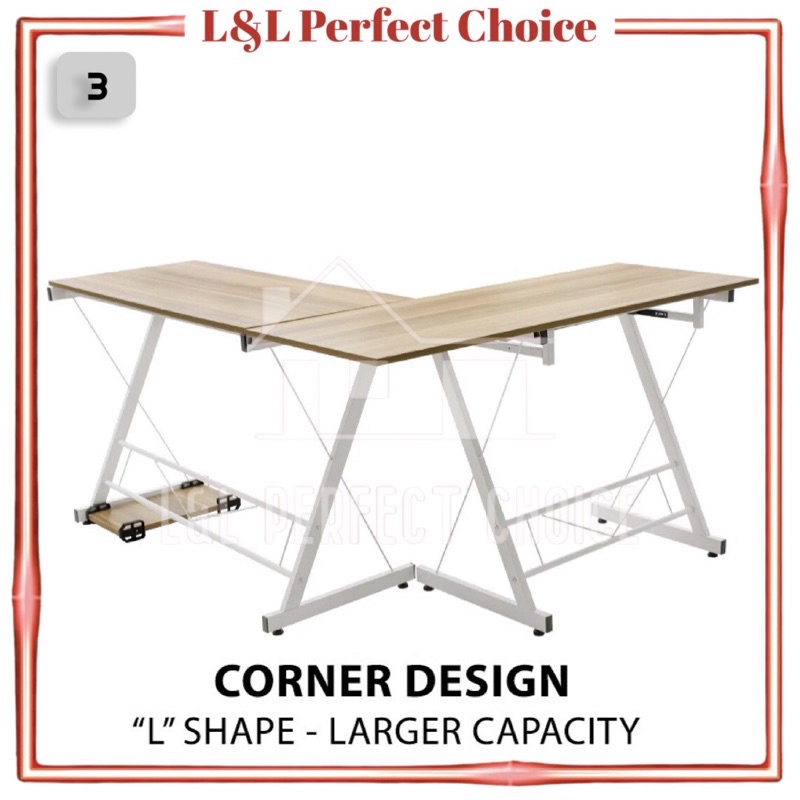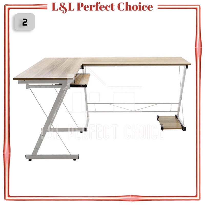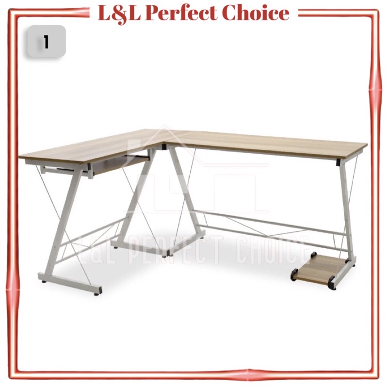 Modern Workspace L Shape Computer Desk Shelf Home Office Wooden Study Table Pejabat Desk Meja Modern Table Corner