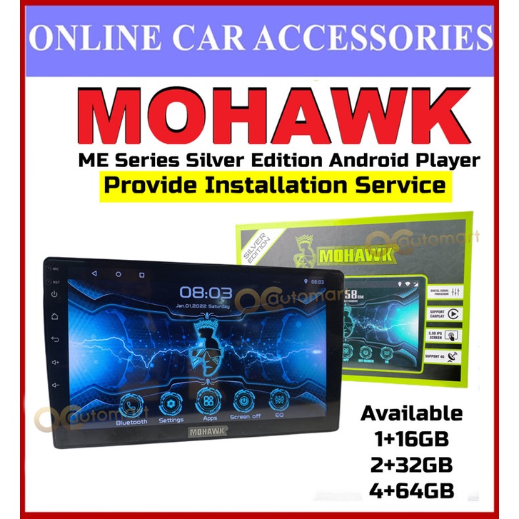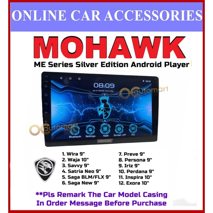 Mohawk Me Series 1+16 / 2+32 / 4+64 Silver Edition Car Android Player Plug n Play For Proton Perodua Toyota Honda Nissan