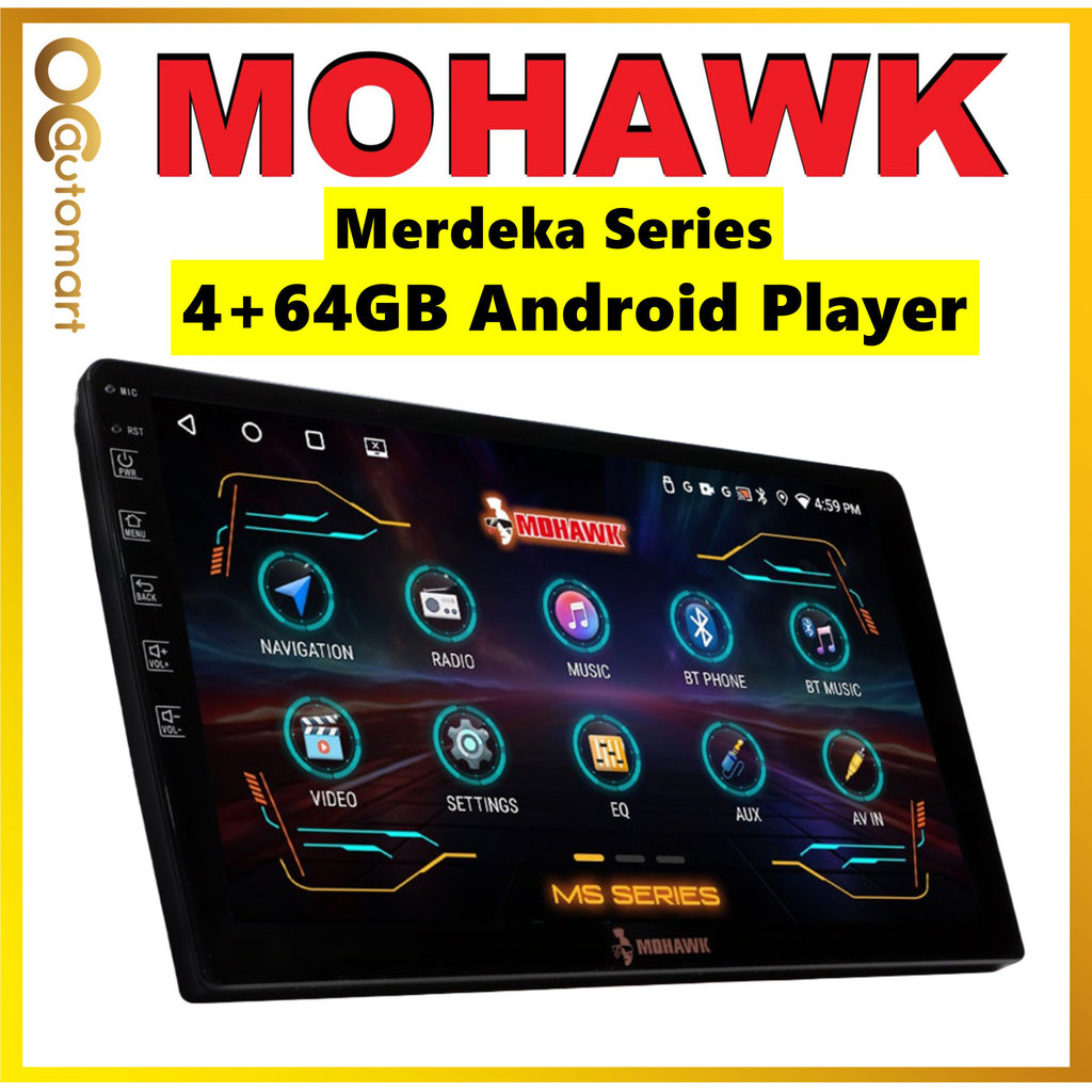 Mohawk Merdeka Version MS RK Series 4+64GB Android Car Android Player AHD IPS Screen Plug n Play