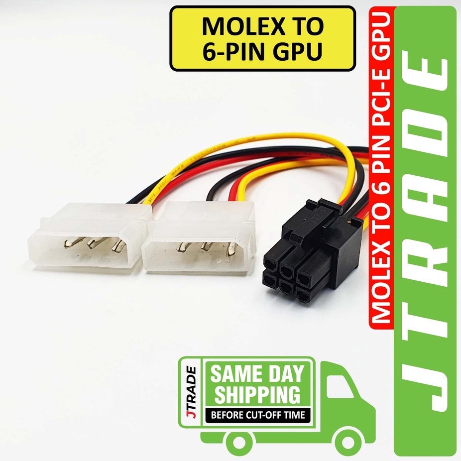 Molex IDE 4 pin Male to 6 Pin Male Power Cable for PCI-E GPU Graphic Card 17cm JTRADE