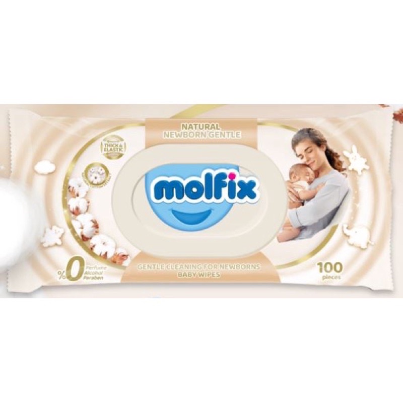 Molfix Natural Baby Wipes 100's For Hygiene Cleaning - Newborn / Antibacterial / Fresh Clean