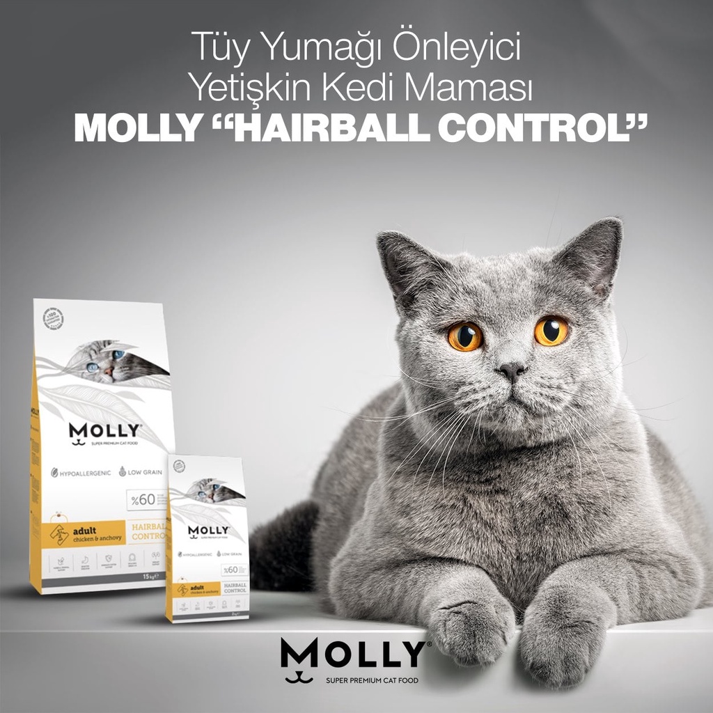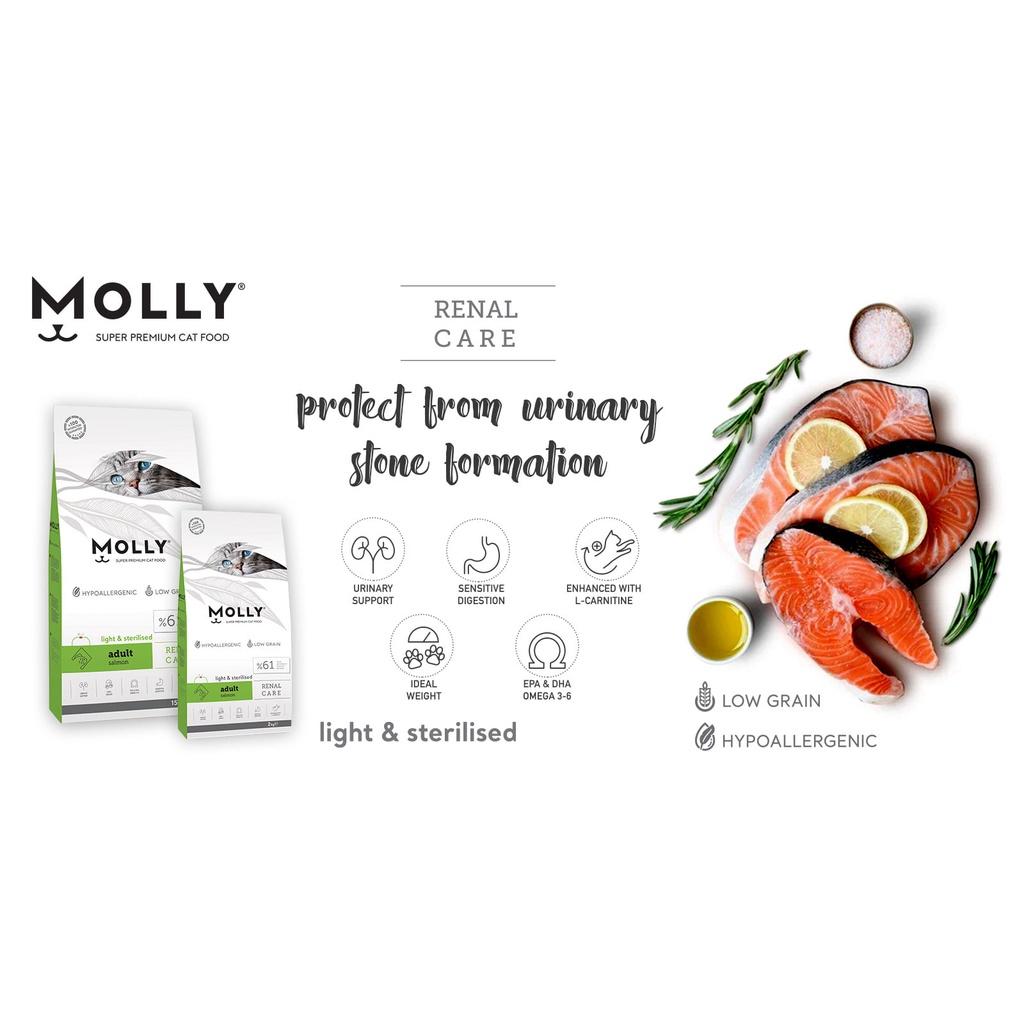 Molly Super Premium Cat Dry Food - Hypoallergenic & Low Grain Cat/Kitten Food 15kg