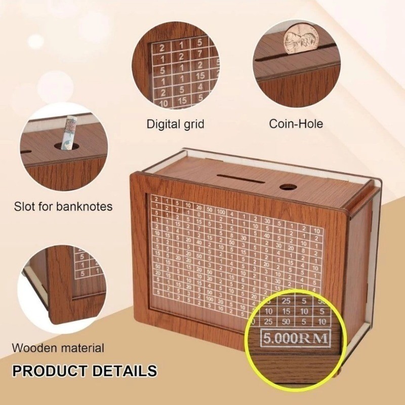 Wooden Money Box Handmade Reusable Piggy Bank Crafts With Saving Money Goals Counter Wooden Coin Storage 存钱罐