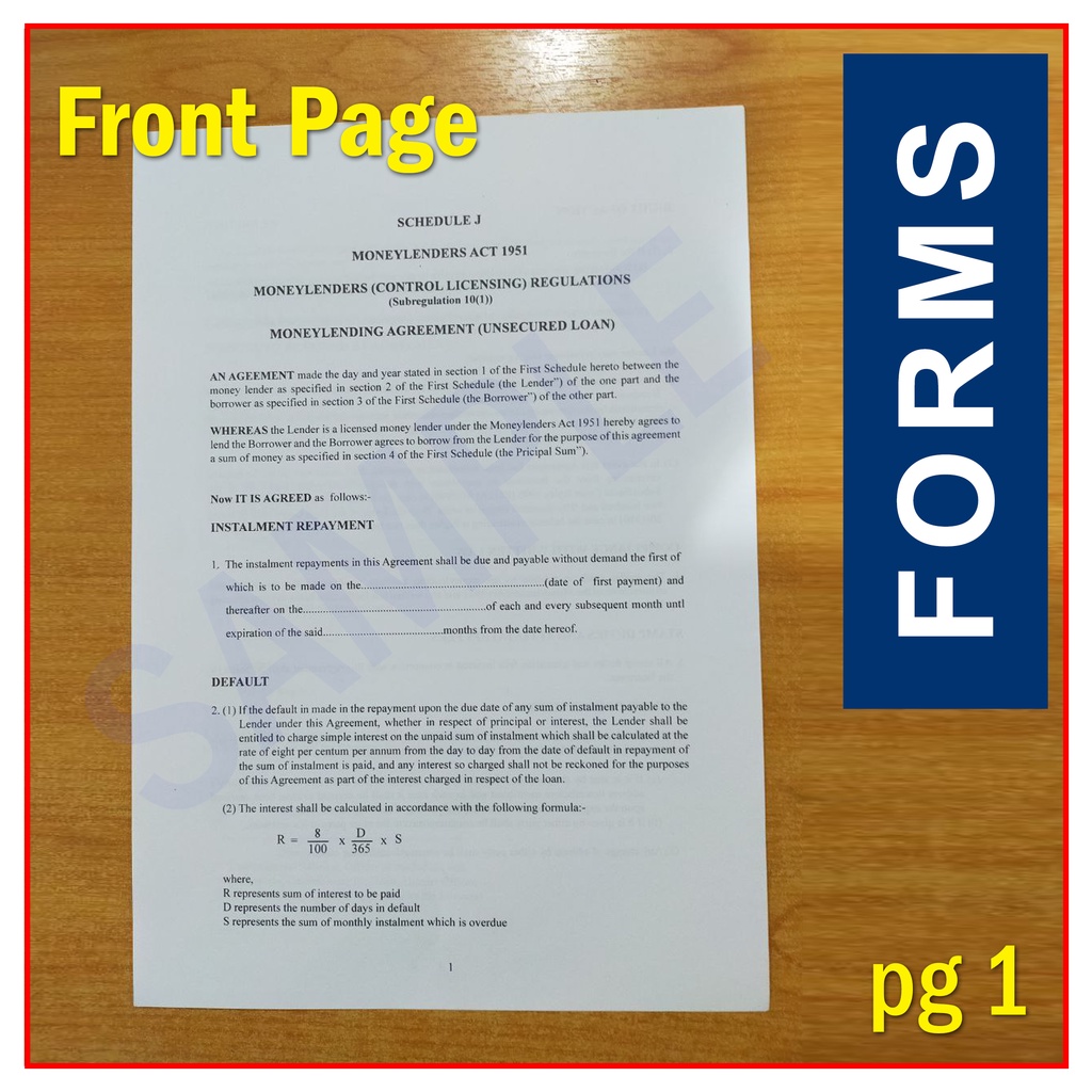 Money Lending Form Borang Pinjaman Wang Money Lenders act 1951 Schedule J Money Lending Agreement Form