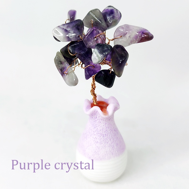 Natural gravel raw stone crystal lucky charm Mini Money Tree Tree of Life Home office desktop creative decoration souvenir Feng Shui turn good luck Lucky tree