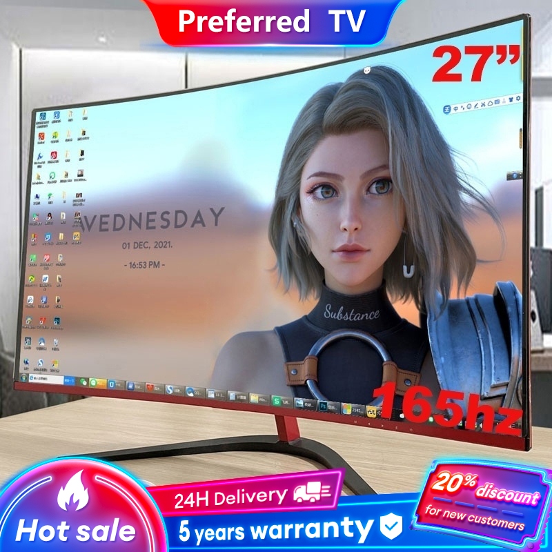Monitor 27 Inch 165HZ Curve Gaming PC Frameless Computer Monitor Murah 1080P FHD HDMI Wide Screen Display Led Monitor