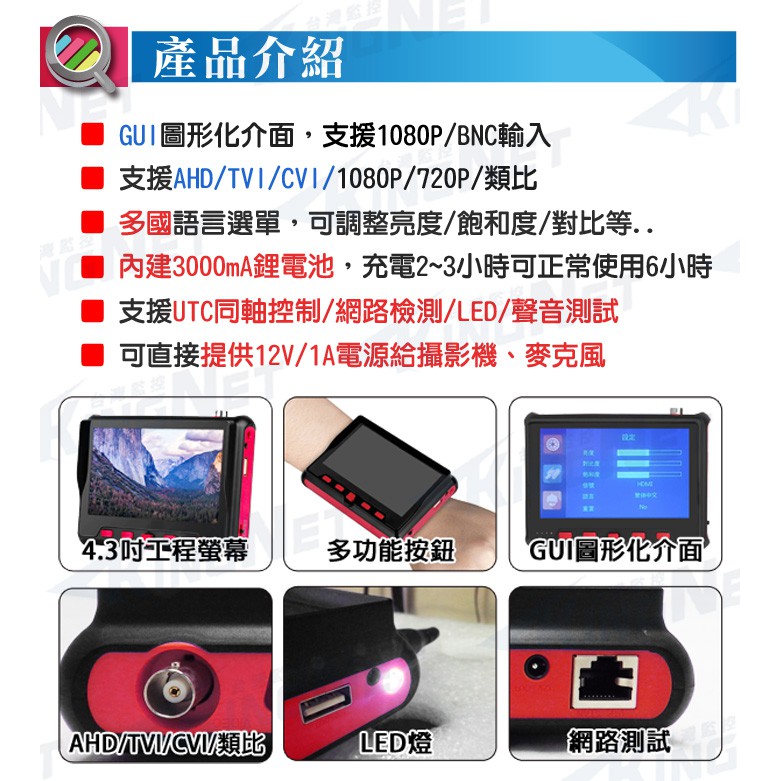 Monitor Engineering Treasure 4.3 Inch 1080P 2 Million Hd Screen UTC Coaxial Control AHD TVI CVI PTZ 2MP