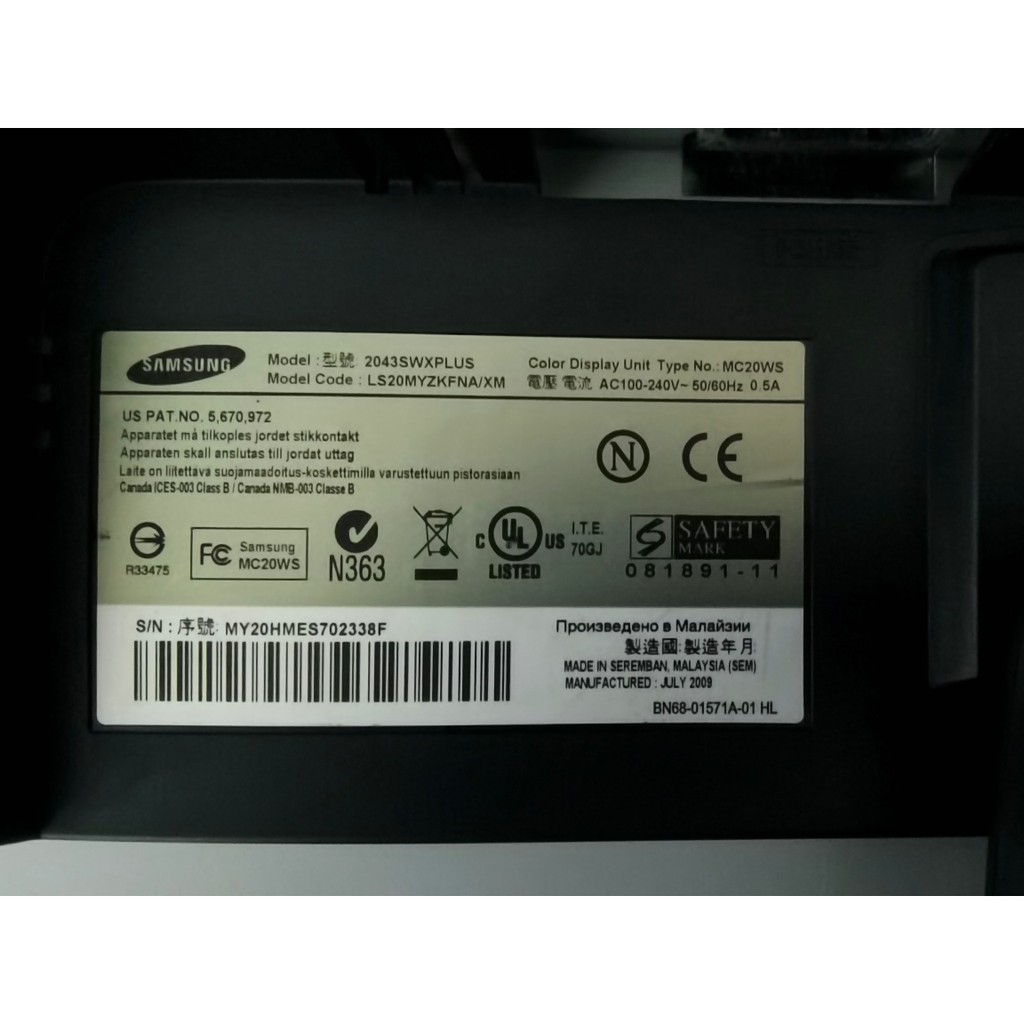 Monitor Samsung SyncMaster 2043SWX - LCD 20"inch Widescreen Resolution - 1600 x 900 used