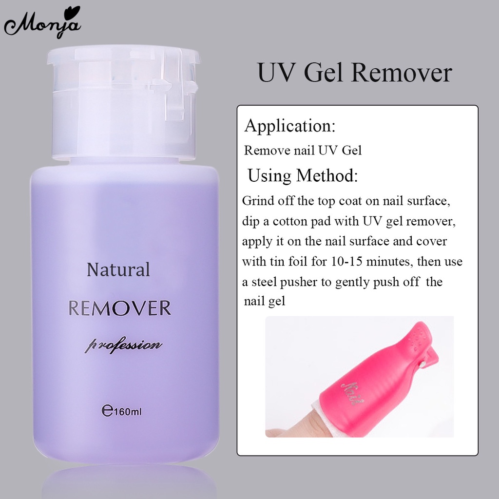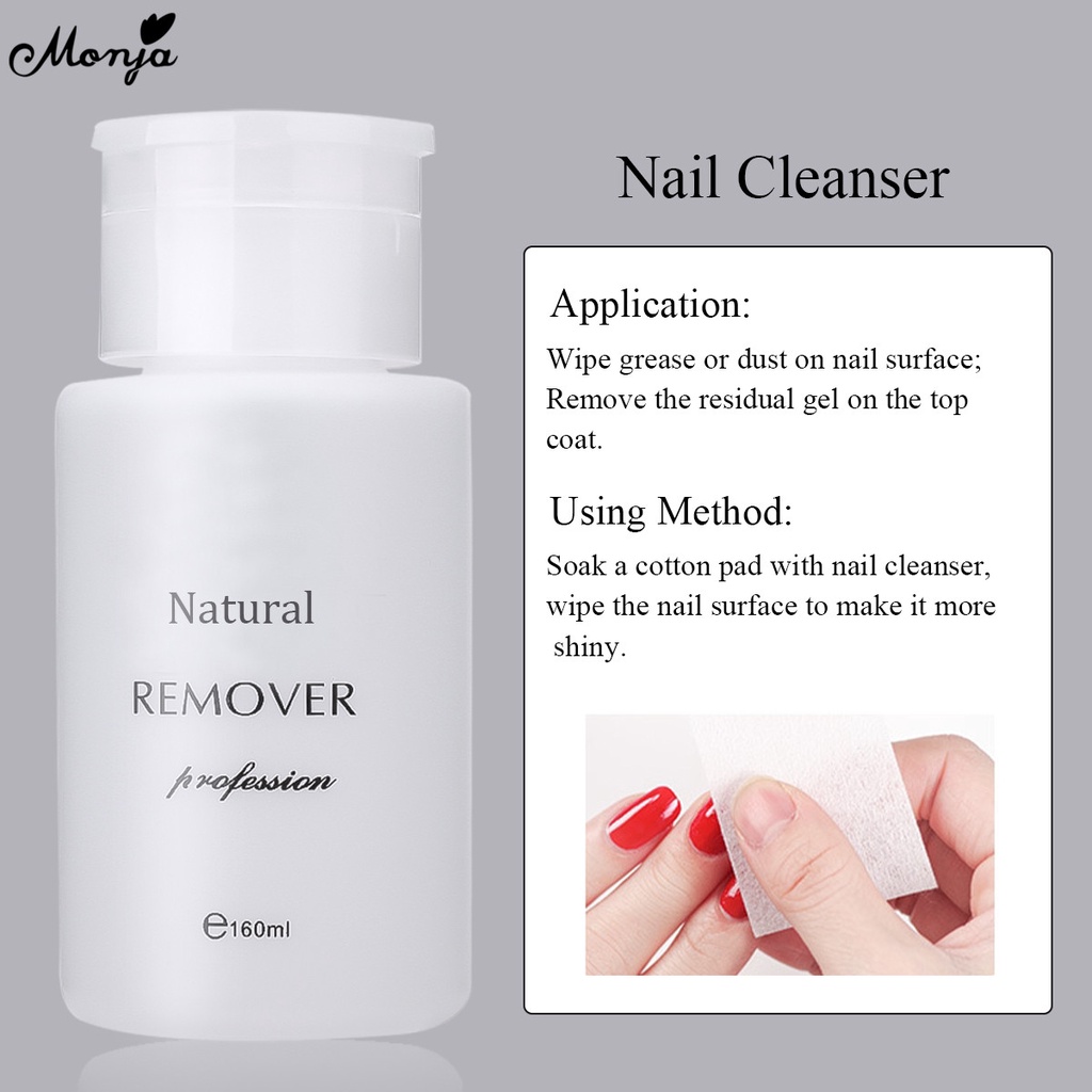 Monja 160ml Nail Remover Liquid Nail Polish UV Gel Removal Dust Dirt Brush Cleanser Professional Manicure Tool Salon Supplies