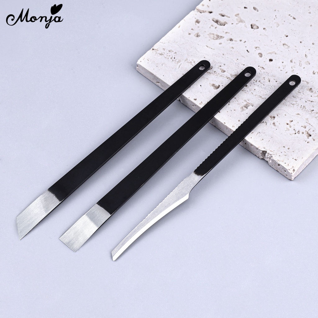 Monja 3pc Pedicure Cuticle Pusher Foot Dead Skin Remover Scraper Paronychia Exfoliating Knife Cutters Ingrown Toe Nail Care Manicure Tools