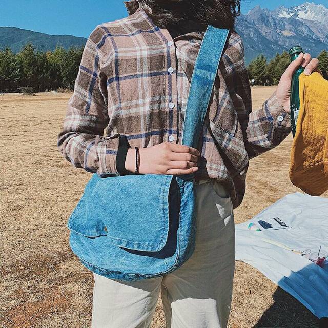 Monologue Denim Sling Messenger Bag Postman Sling Bag Unisex Men Women Jeans Vintage Crossbody