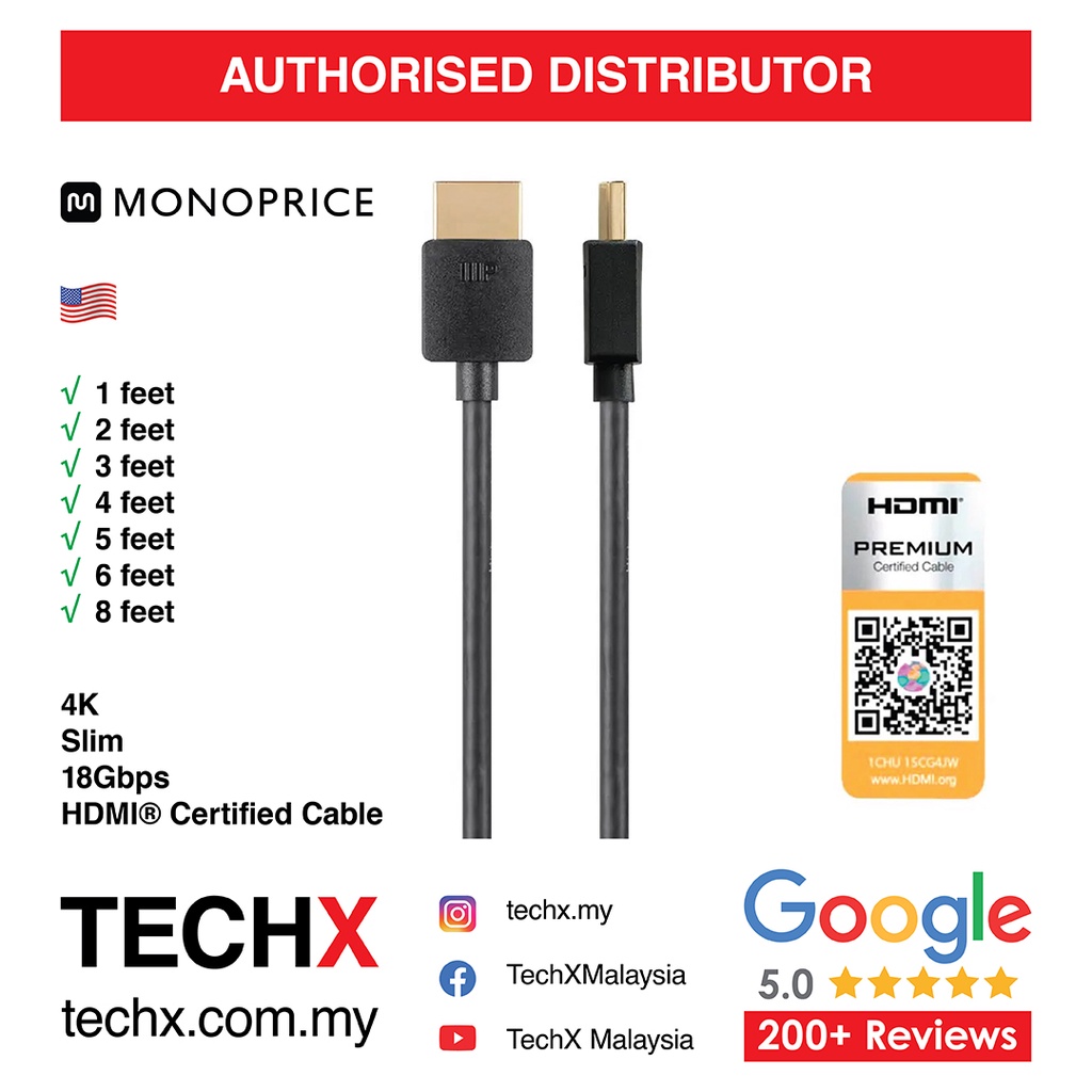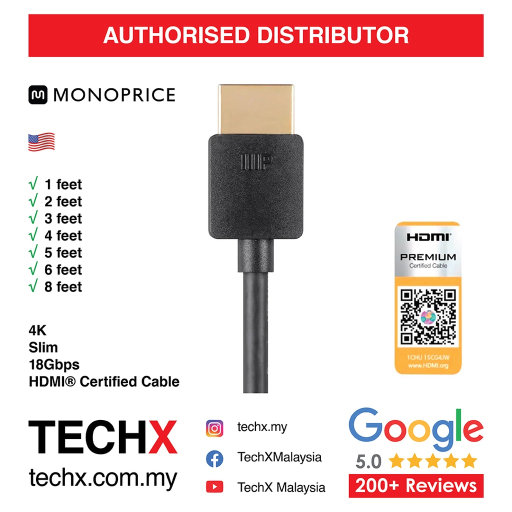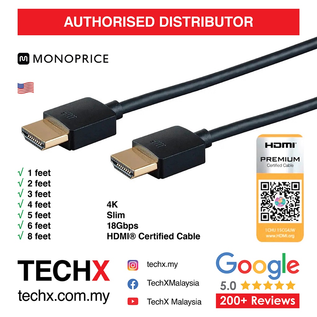 Monoprice 4K Slim Certified Premium High Speed HDMI Cable