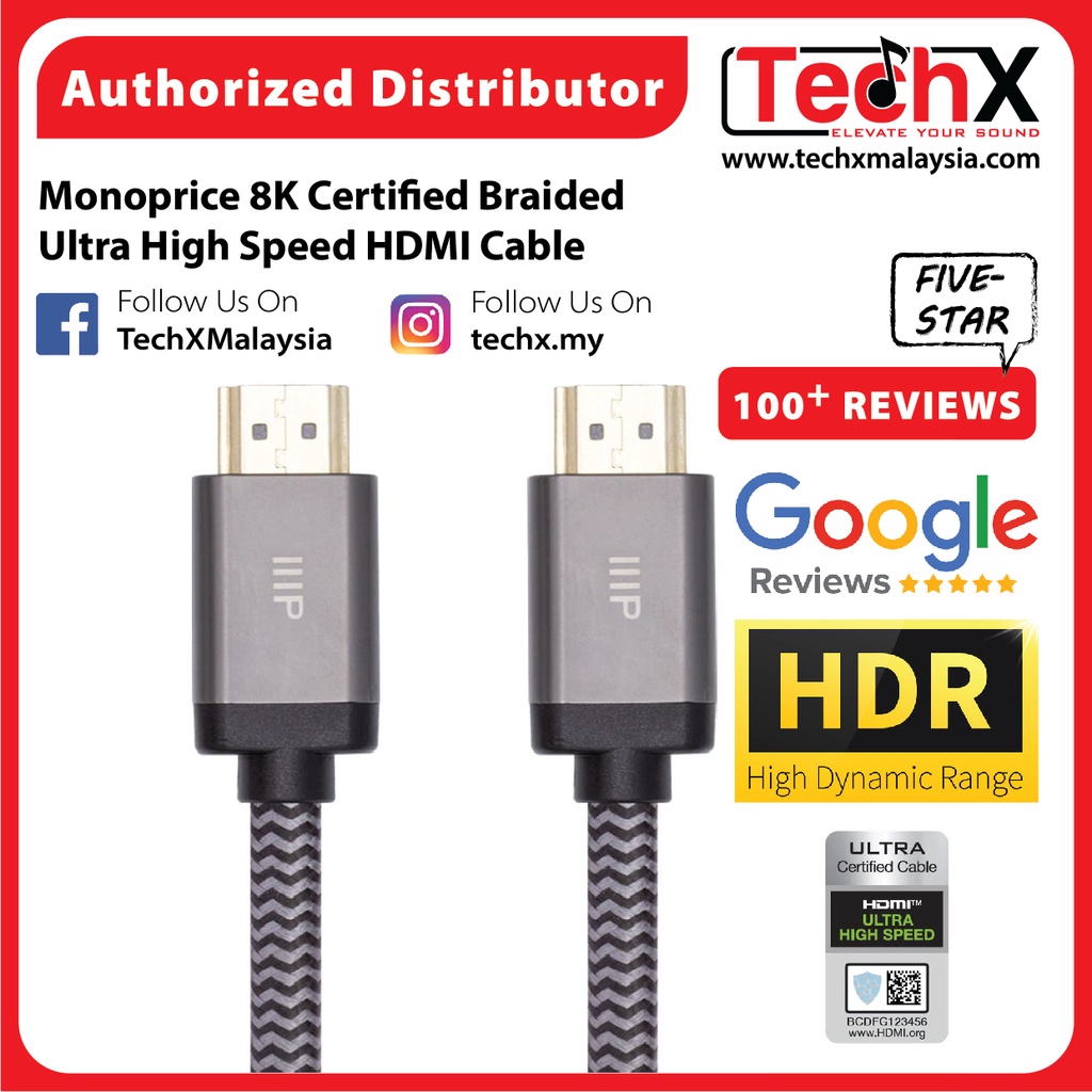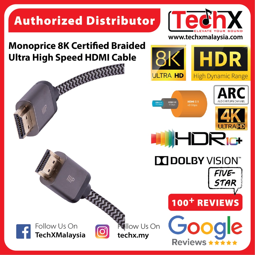 Monoprice 8K Braided Certified Ultra High Speed HDMI Cable - 48Gbps