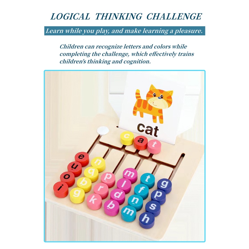 Montessori early education game vowel spelling word pairing educational toys intellectual exercise logical thinking training board game toys 3-6 years old boys and girls wooden toy