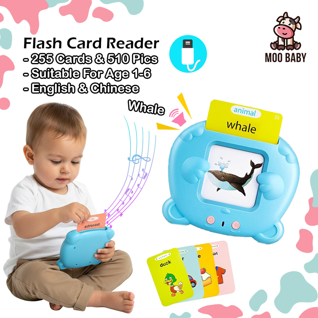 ⭐Moo Baby Suku Kata Flash Card Reader Kad Belajar Talking Baby Educational Toys Flash Card Autism Toys for Kids 学习卡