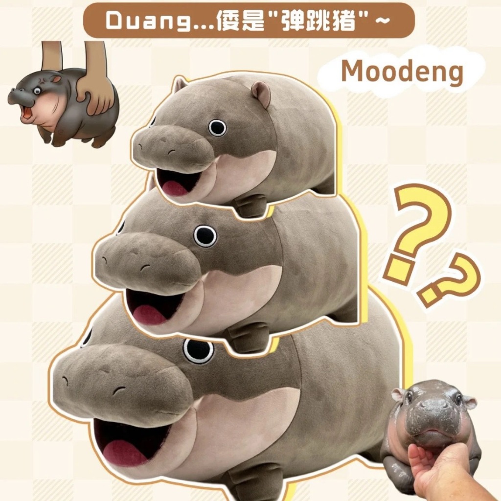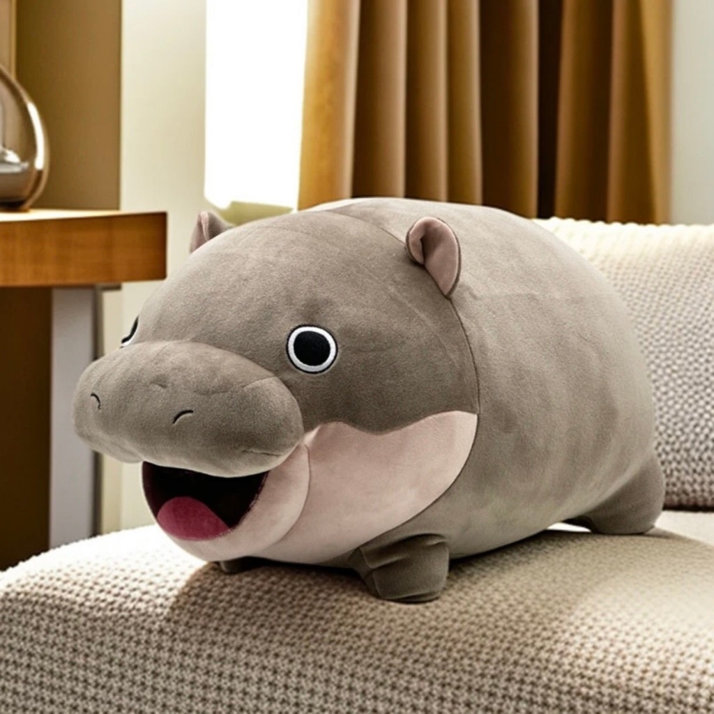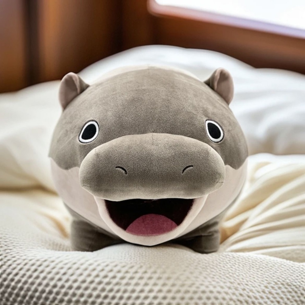 MooDeng Bouncy Hippo Plush Toy - Cute Stress Relief Stuffed Animal for Kids & Adults | Viral Sensory Pillow Gift for Birthdays, Girlfriends & Children (Soft Jumping Hippo Plushie)