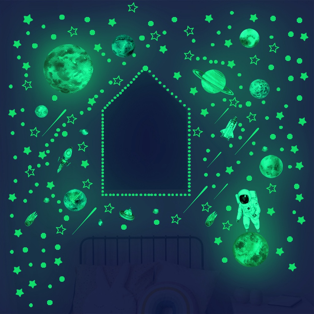 Moon and Planet Wall Decal Luminous Astronaut Universe Galaxy Space Wall Stickers Outer Space Decal for Kids Boys Girl Bedroom Christmas Gift