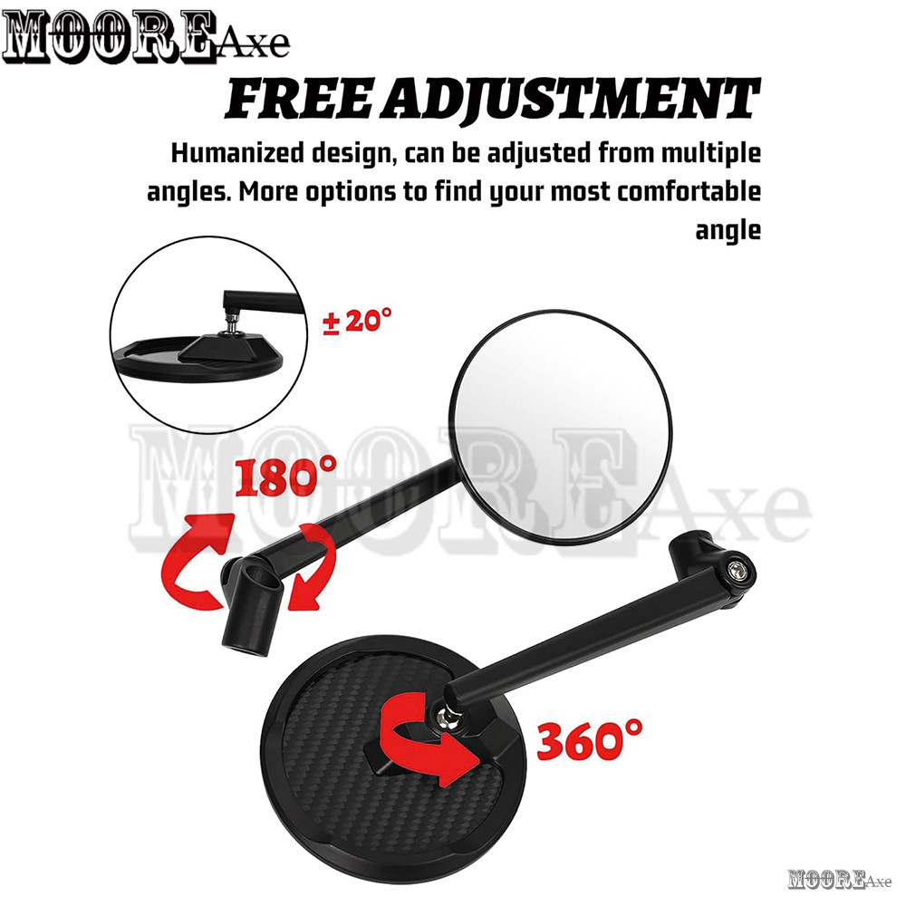 Mooreaxe Motorcycle Convex Rear View Mirrors with M10/M8 Bolt Round Mirror For CB650R X-ADV750 Rebel CB500X Africa Twin