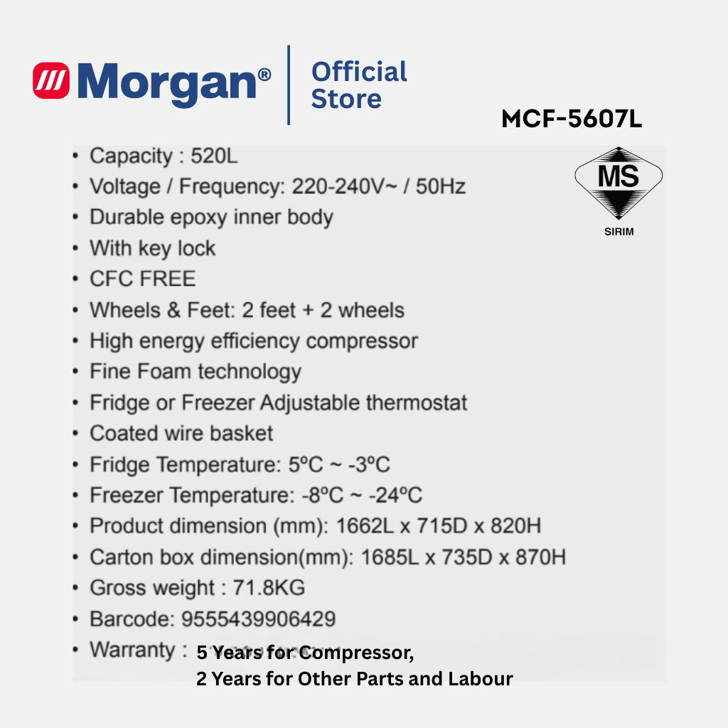 Morgan Chest Freezer Deep And Quick Freezing (520L) MCF-5607L