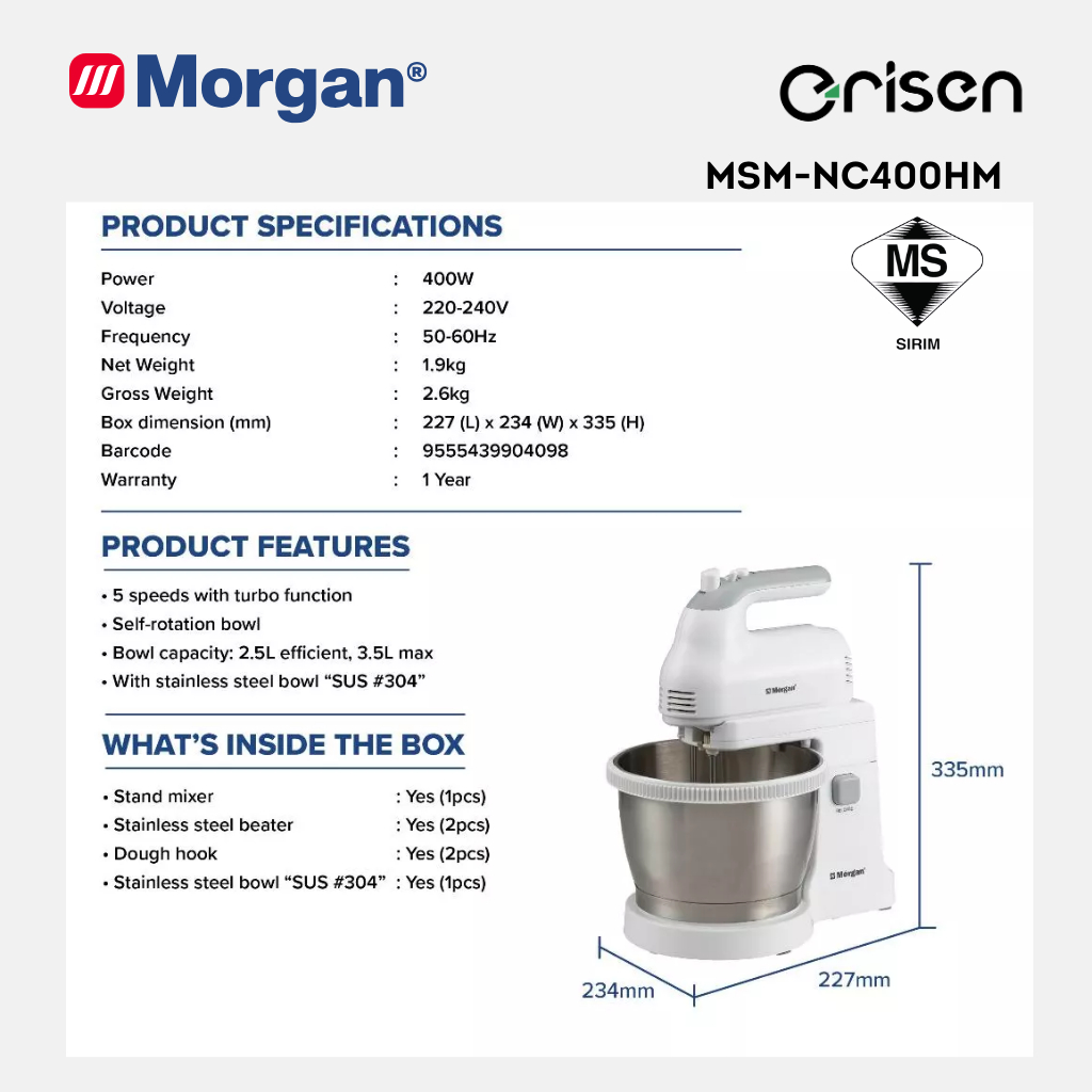 Morgan Stand Mixer (3.5L) MSM-NC400HM