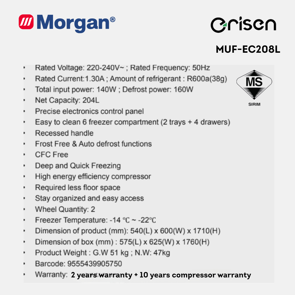 Morgan Upright Freezer (204L) MUF-EC208L
