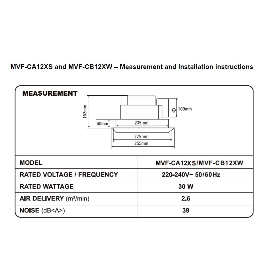 Morgan Ceiling Mounted Ventilation Fan - White MVF-CB12XW/Silver MVF-CA12XS