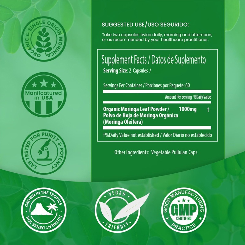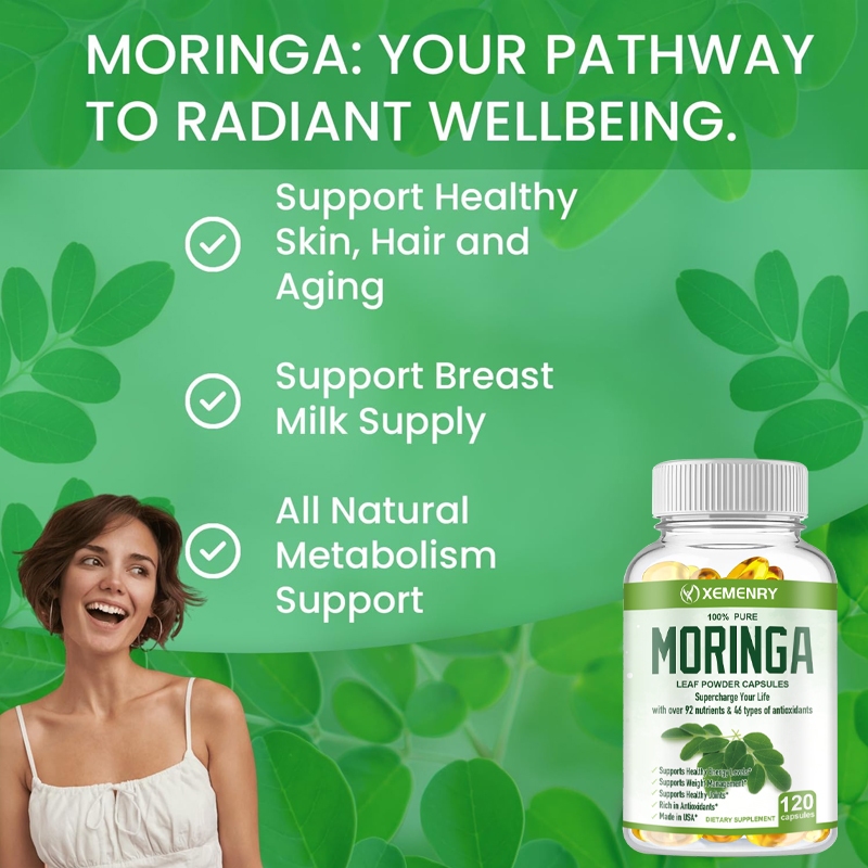 Moringa Capsules | 100% Pure Single Source Moringa Leaf Powder Supplement | Good for Breastfeeding, Heart and Brain Health | 120 Capsules