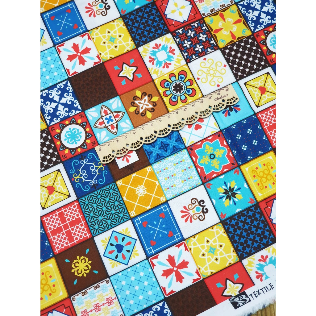 Mosaic Designer Cotton Kain Fabric Craft Beg DIY Tablecloth Background Decoration Clothing Dress Pakaian Pelitup Muka