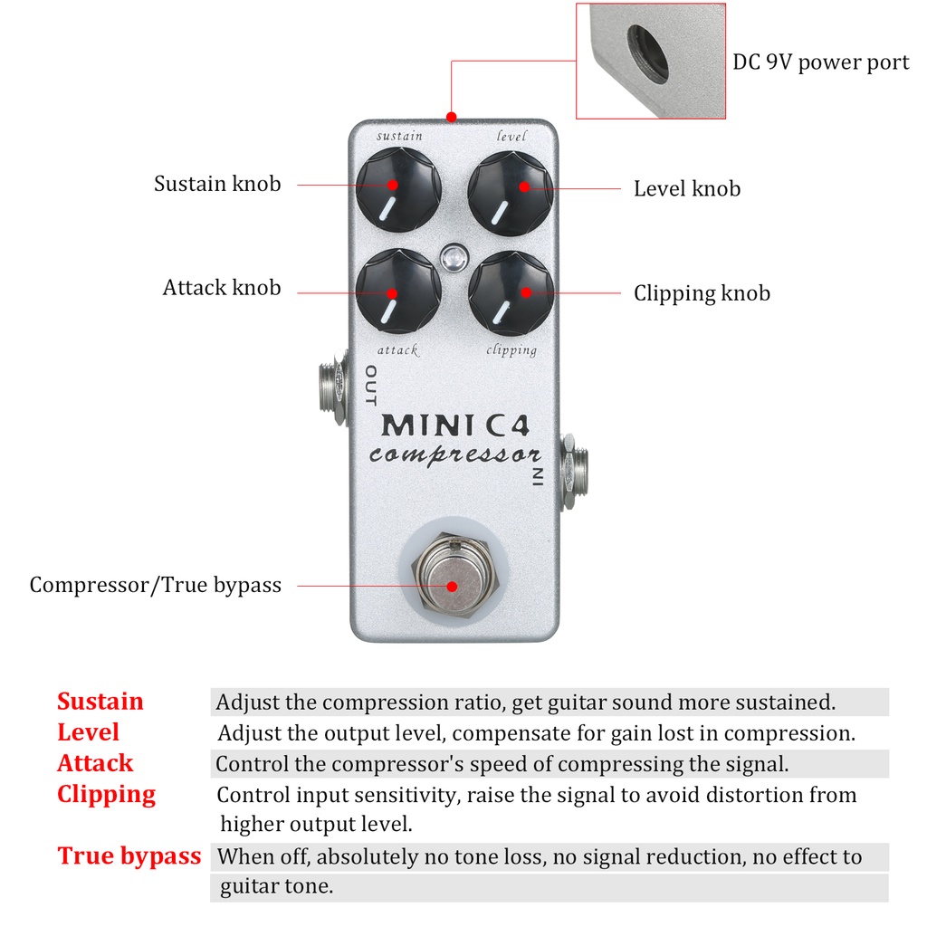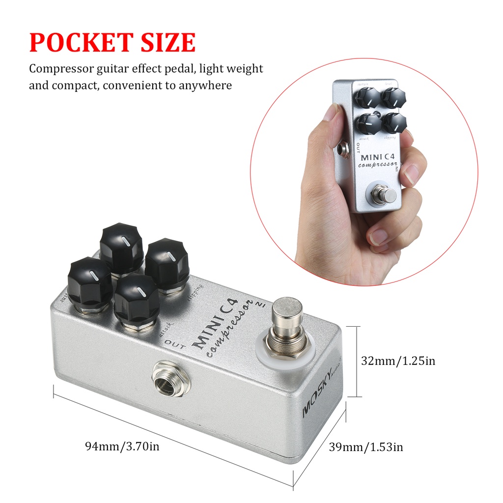 Mosky audio Bass Guitar Compressor Pedal Mini C4 Compressor Effect Pedal True Bypass Rotate Sustain Attack Parts