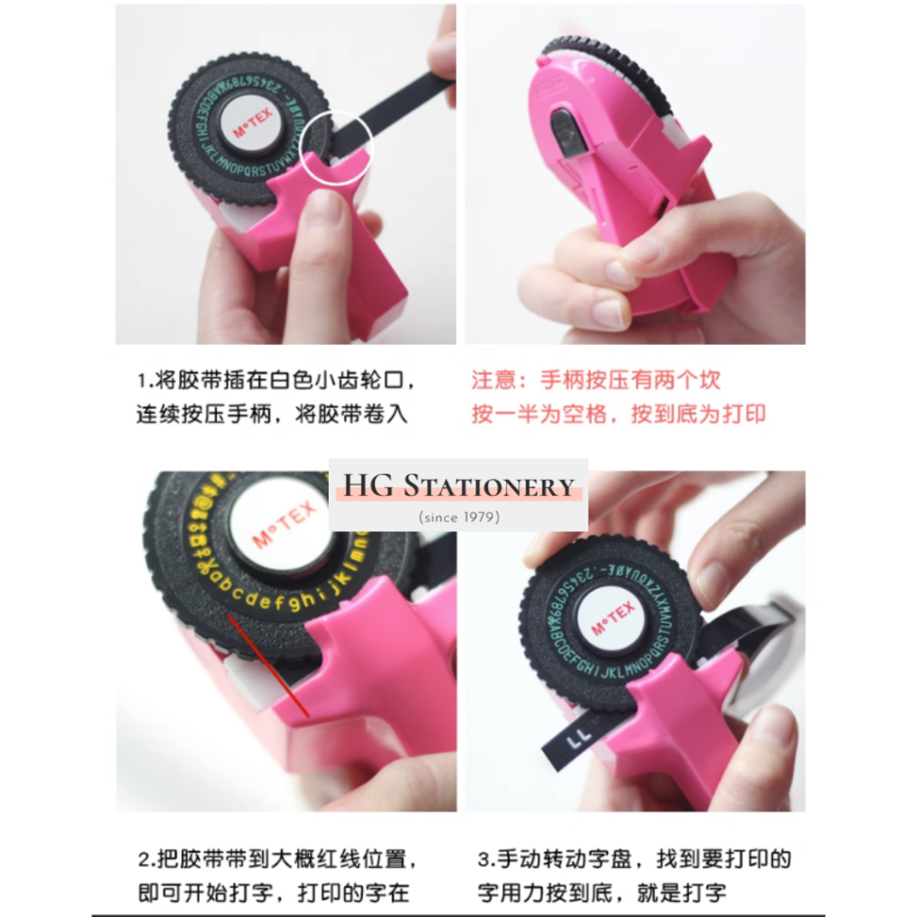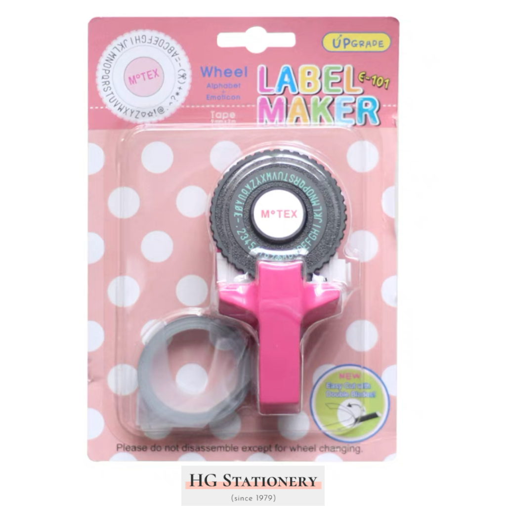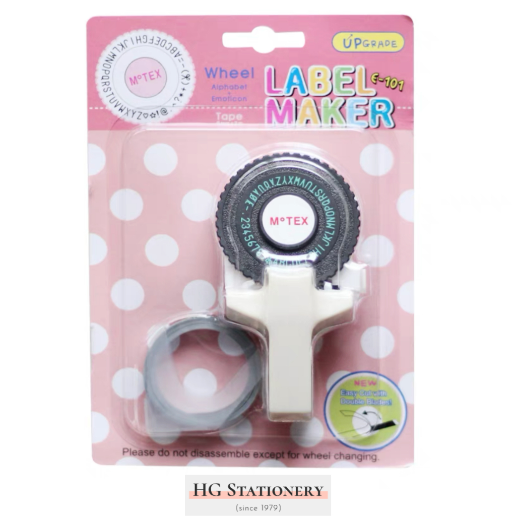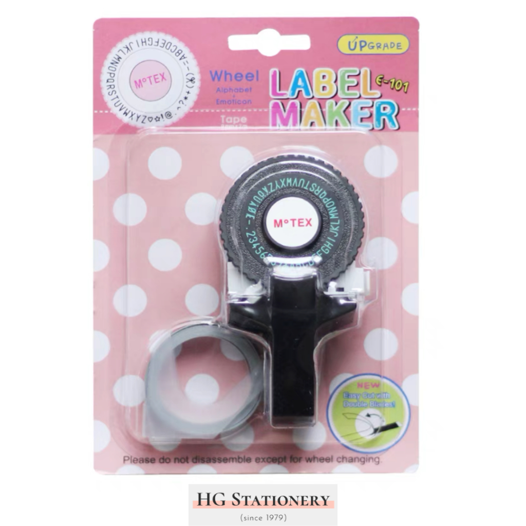 Motex Embossing Wheel Label Maker Machine Alphabet Emoticon with Black Tape