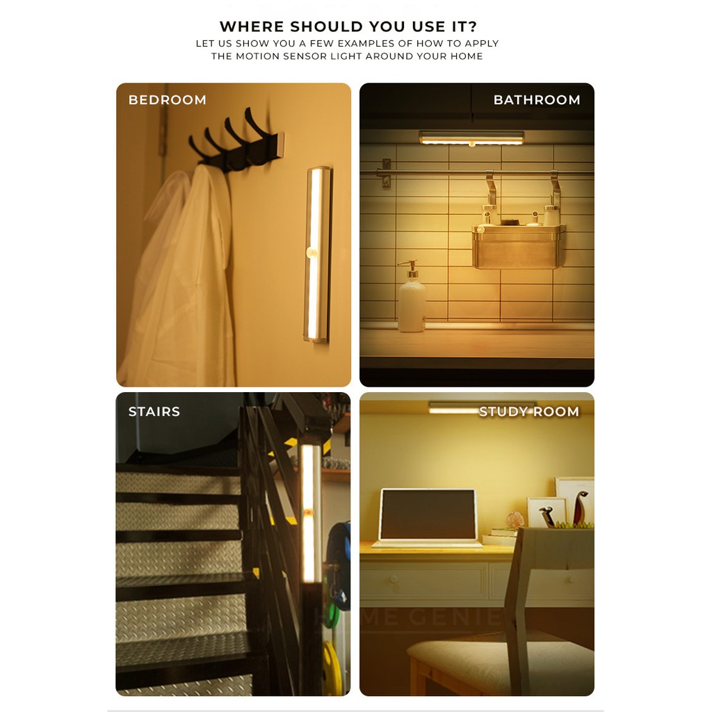 Motion Sensor Closet Battery LED Night Light Bar for Cabinet Lighting Lamp Wireless Stairs Hallway Kitchen by Home Genie