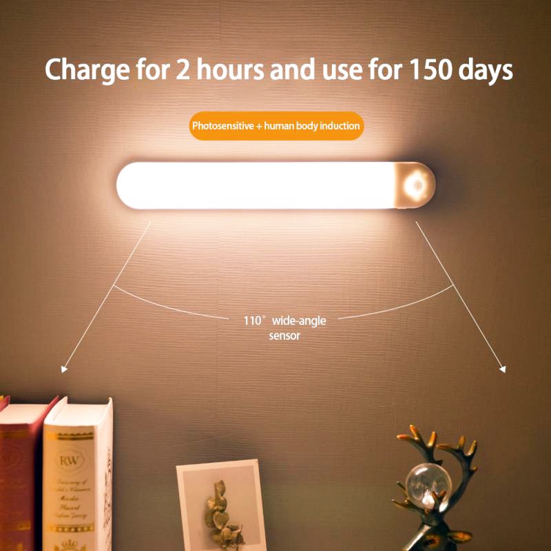 Motion Sensor LED Light Bar USB Rechargeable Cabinet Auto Lighting for Bedroom Toilet Kitchen Stairs