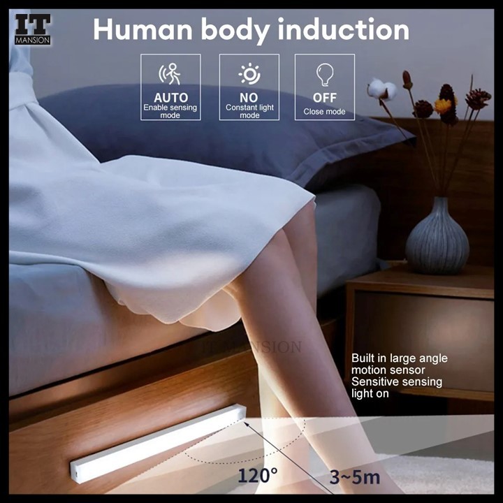 Motion Sensor Light Strip Smart LED Light Lamp Wireless Rechargeable MAgnetic Cabinet Bedroom Lampu