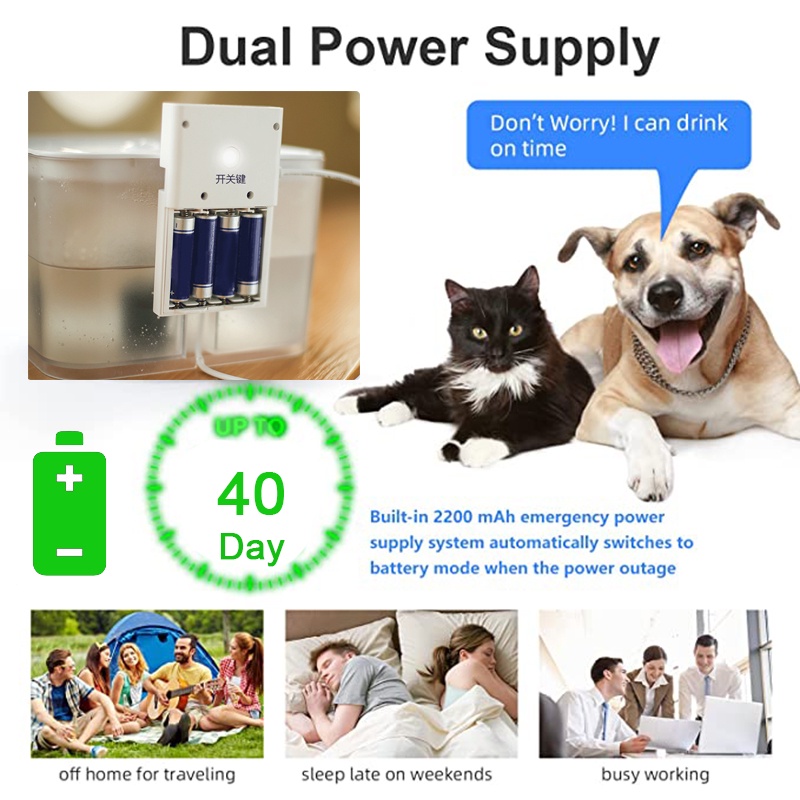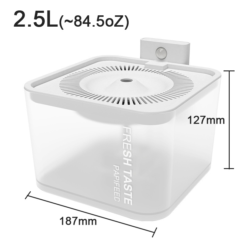 Motion Sensor Wireless Automatic 2.5L Cat Water Fountain Replaceable Filtration Use USB Cable or Battery