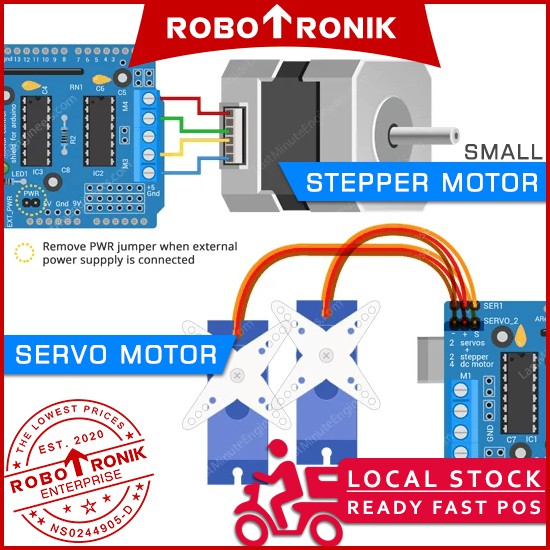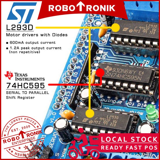 Motor Driver Shield L293D & 74HC595 - Arduino UNO Compatible for DC, Servo & Stepper Motor, 293 L293 293D