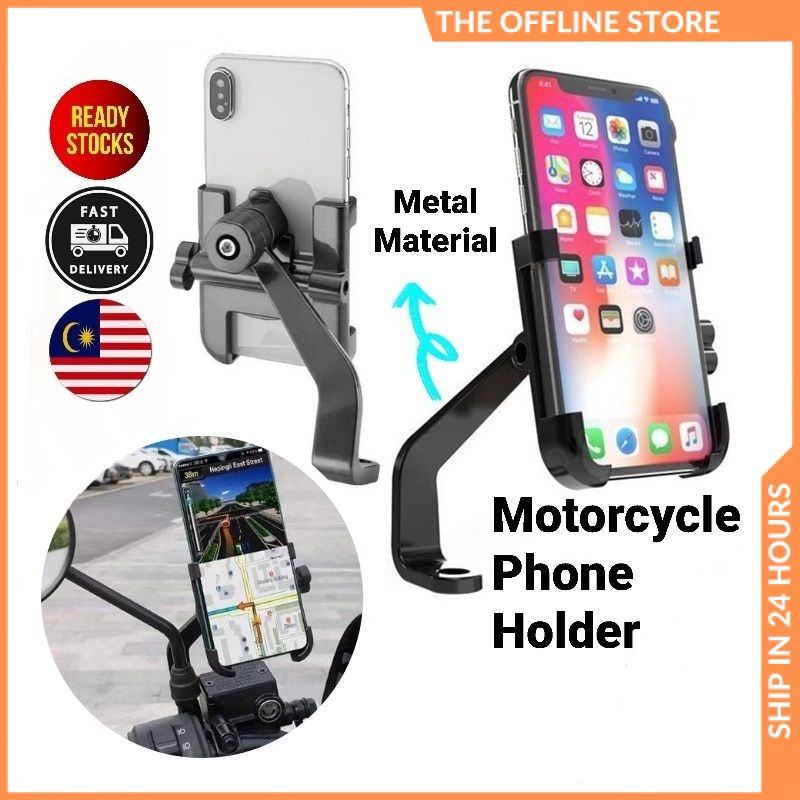 Motor Holder Phone Motorcycle Mount Metal Aluminum Alloy with 360 Degree Rotation Pemegang Telefon Motor