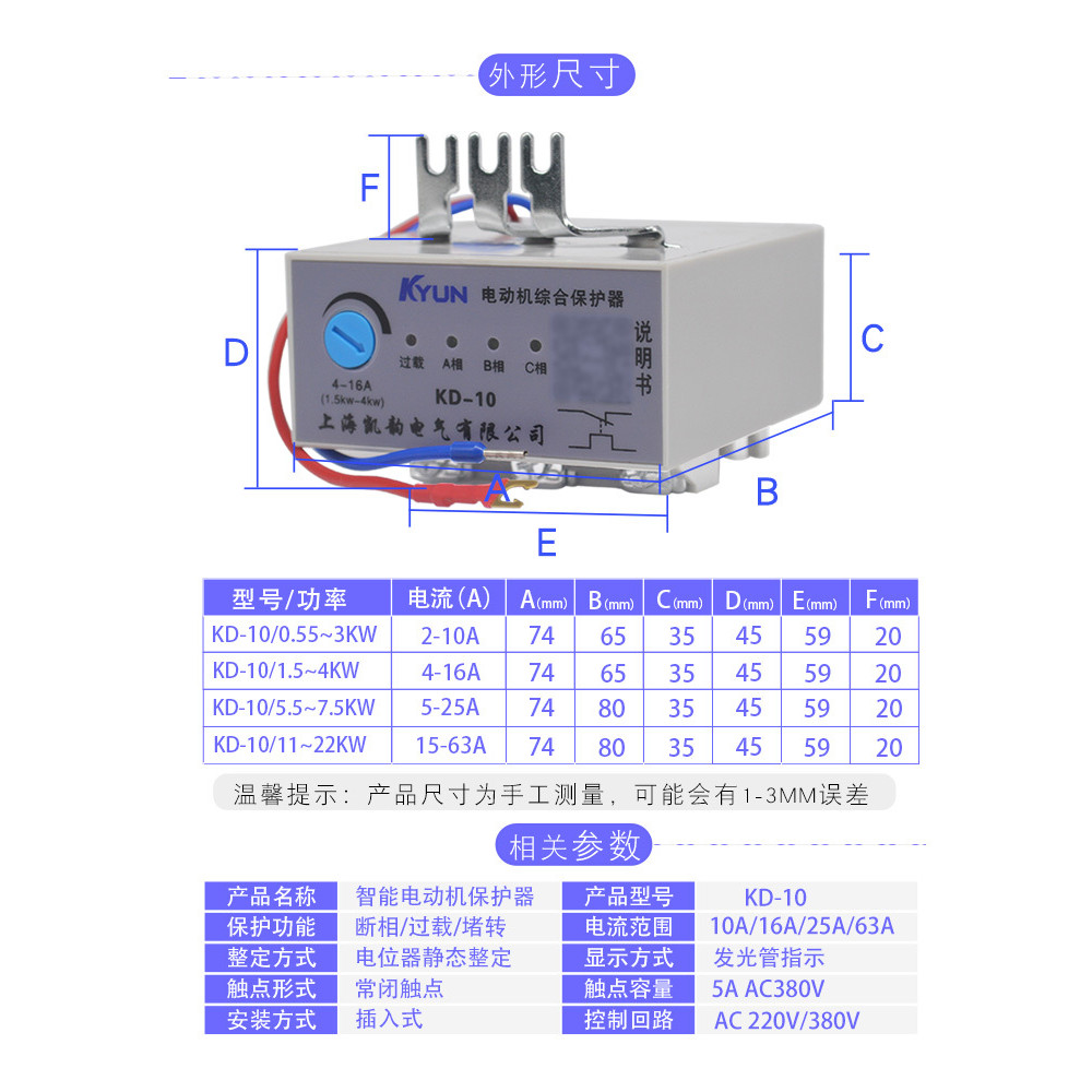 Motor Intelligent Integrated Protector Missing Phase Overload Phase-off Heat Relay Plug-In Fan Water Pump KD-10 CF2G